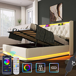 Merax Lit Double 180*200cm-rangement Hydraulique-avec Port De Chargement USB Type-c-gris |