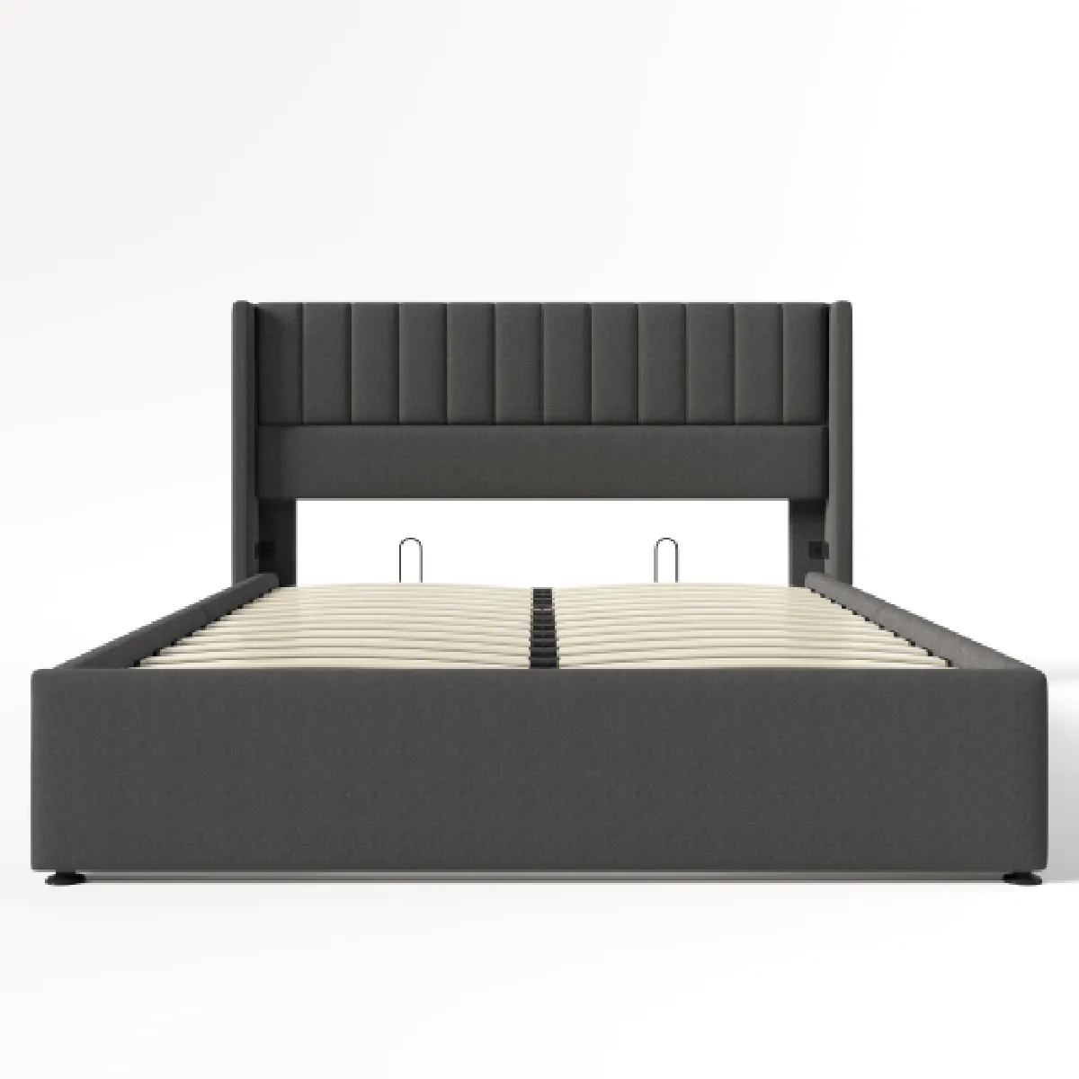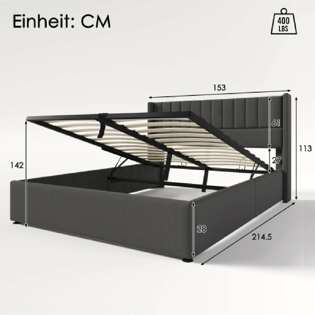 Merax Lit Double Hydraulique 140x200cm-lit Coffre-système Hydraulique-lit En Bois-en Lin-gris |