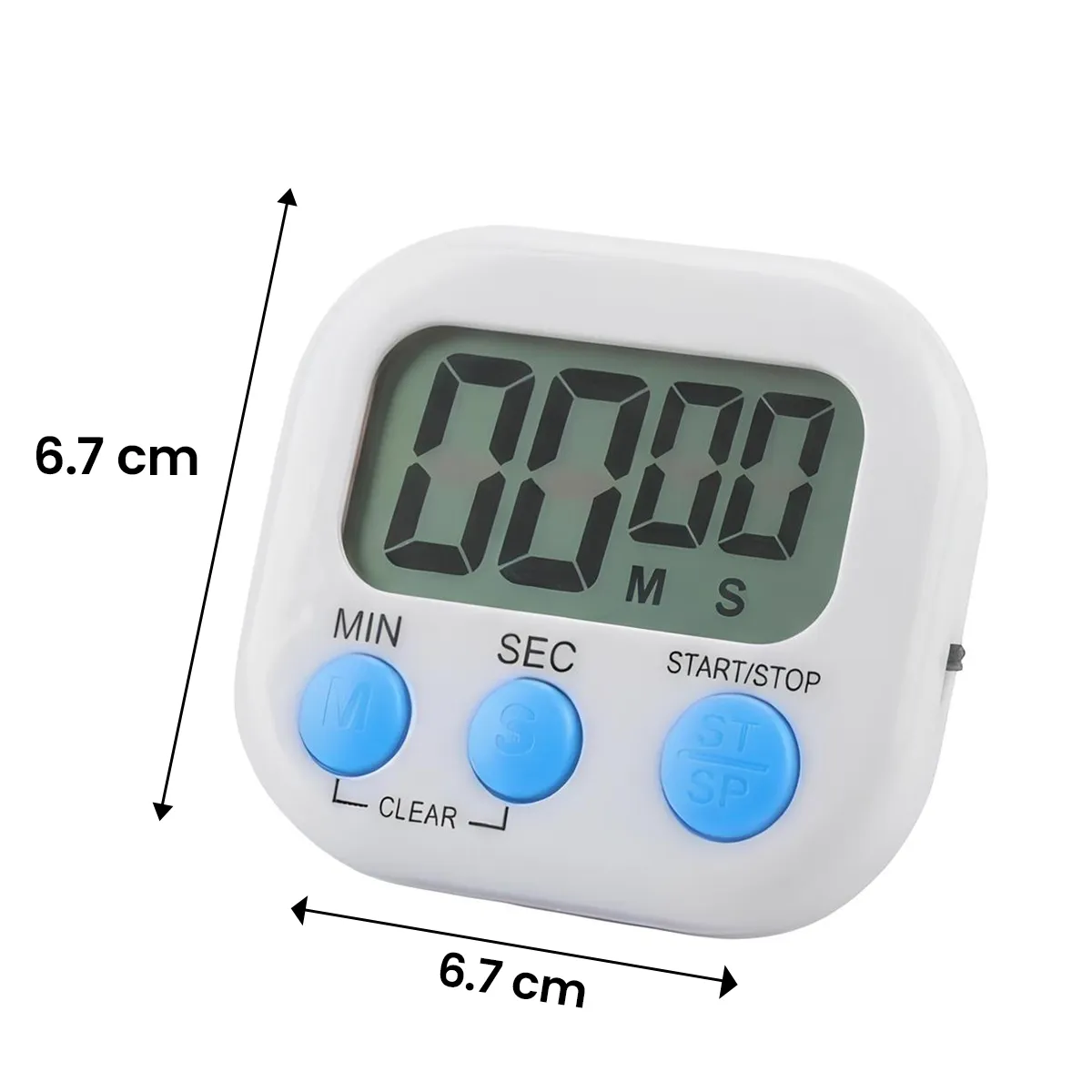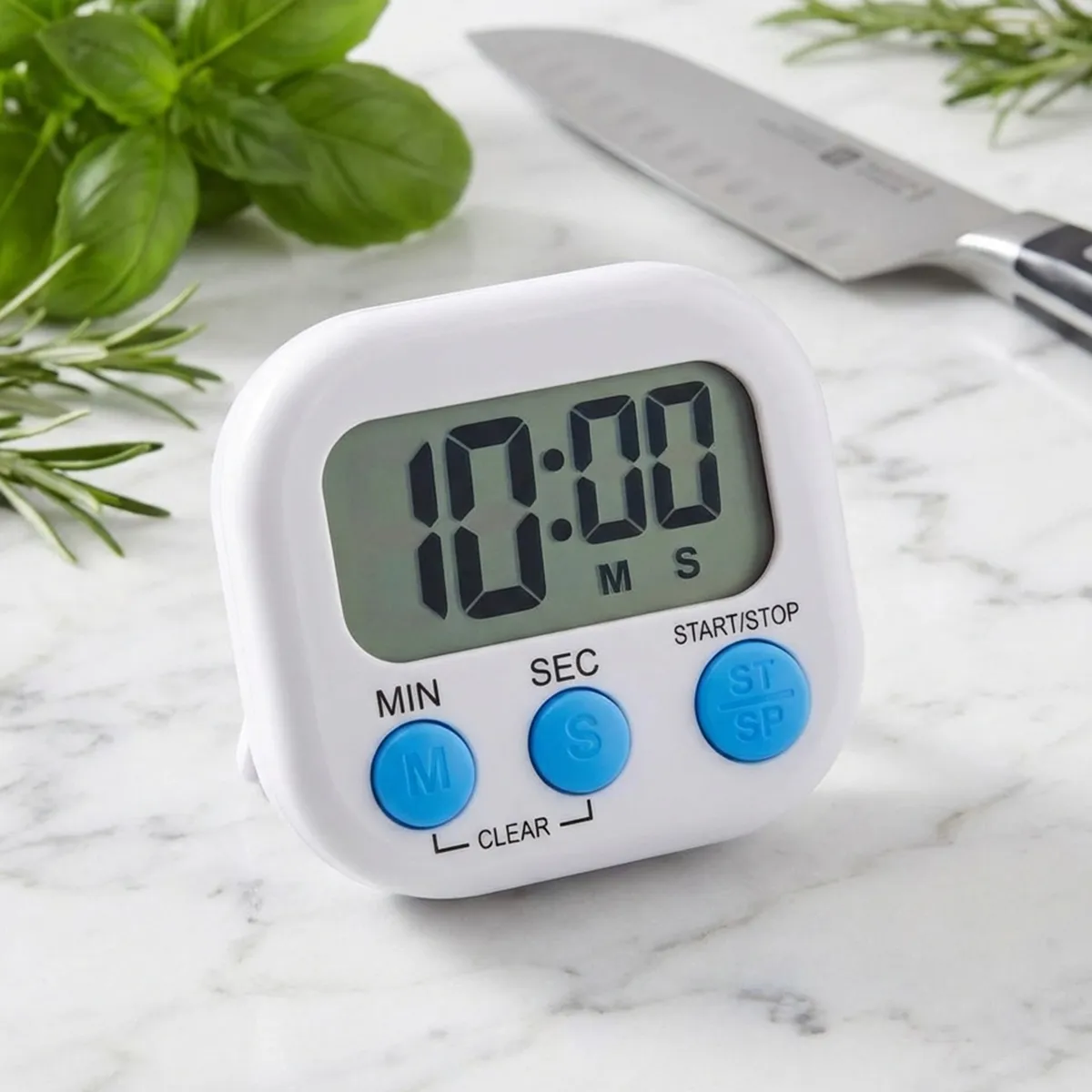 Ce minuteur électronique est conçu pour assurer un suivi précis du temps lors de la cuisson, de la pâtisserie ou de toute activité nécessitant un contrôle fiable des minutes et secondes. Il dispose des fonctions de compte à rebours jusqu'à 100 minutes et de chronométrage avec un affichage digital clair et lisible. Les boutons dédiés permettent un réglage simple et rapide ainsi qu'un contrôle start et stop intuitif.