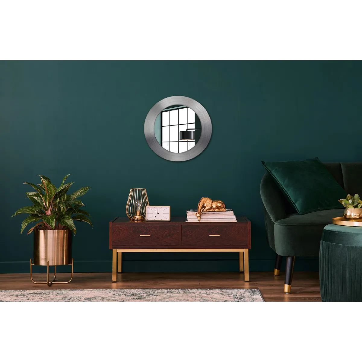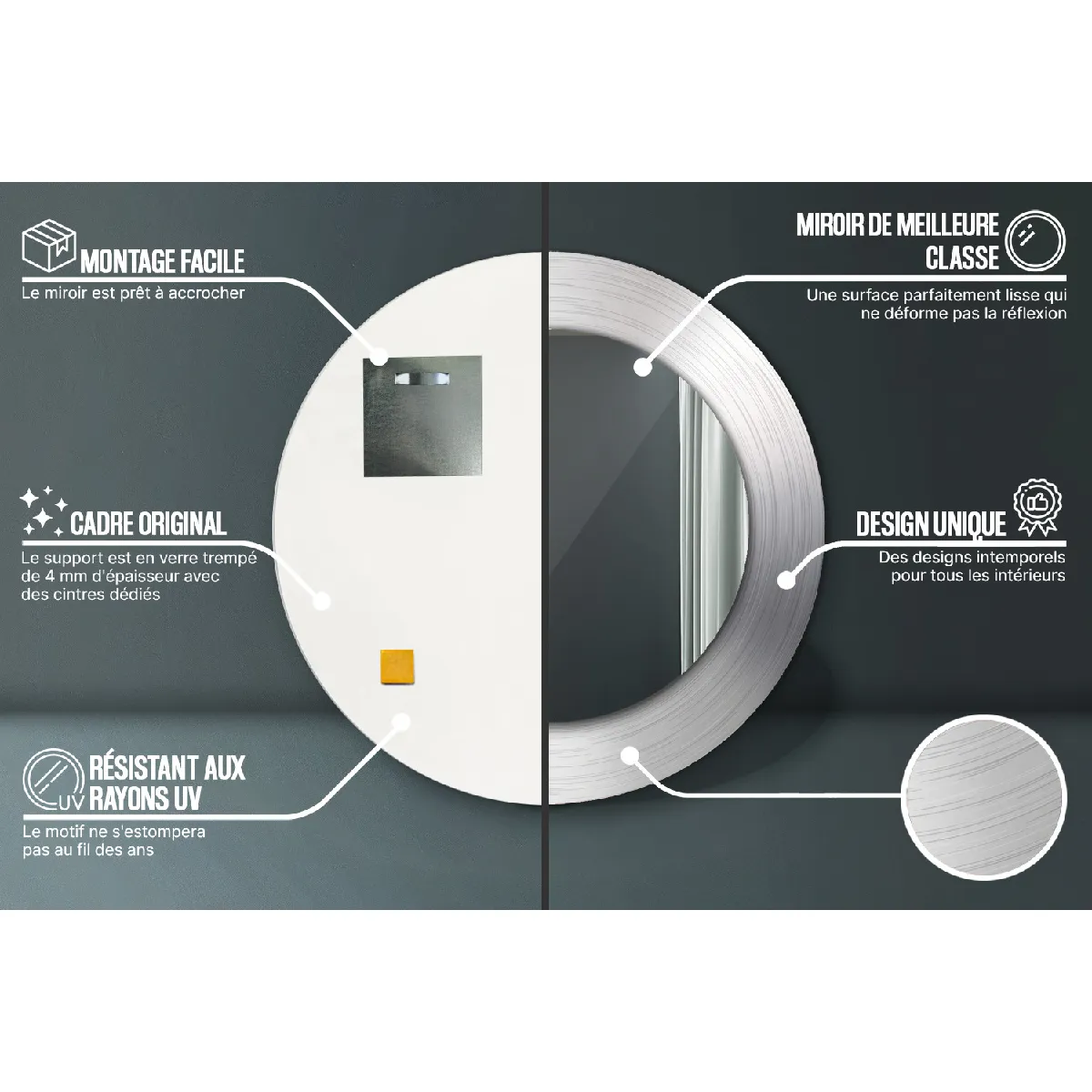 Miroir Rond Décoratif avec Cadre en Verre Trempé Imprimé - Design Moderne pour Salon et Chambre - Silhouette Circulaire Élégante - Style Industriel