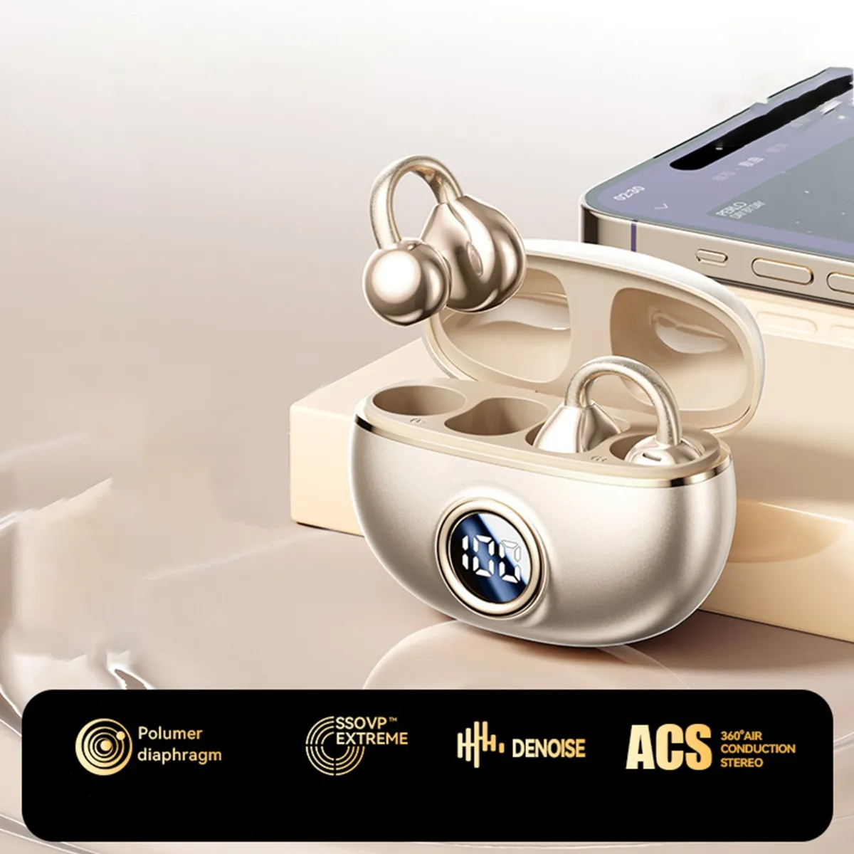 INF Écouteurs Bluetooth à conduction osseuse sans fil avec affichage numérique Skin color