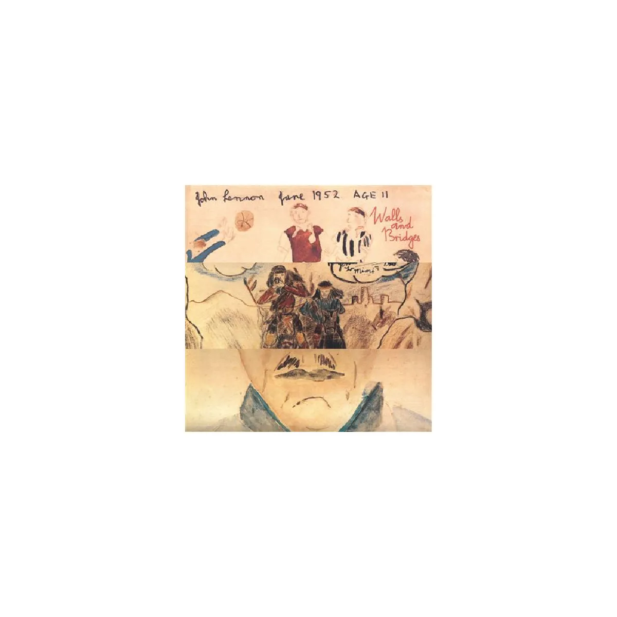 - Visuel de couverture : dessin/sketch manuscrit avec mentions manuscrites « John Lennon June 1952 AGE 11 » et « Walls and Bridges »
