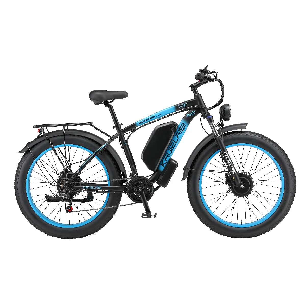 Conçu pour des utilisateurs de 160-210cm, ce vélo propose une selle ergonomique et des pédales en alliage d'aluminium pour un confort optimal. Il dispose de plusieurs modes de conduite : simple moteur, double moteur, purement électrique, assistance pédale et régulateur de vitesse, s'adaptant à tous les scénarios (urbain, montagne, neige). Le porte-bagages arrière permet de transporter des charges supplémentaires pour les trajets quotidiens ou les aventures.