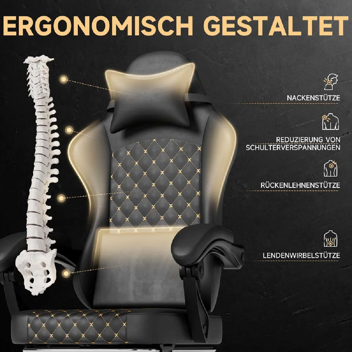 Fauteuil de bureau ergonomique - Capacité de charge de 150 kg - Avec repose-pieds massant - Dossier réglable à 90°, 105° et 135°