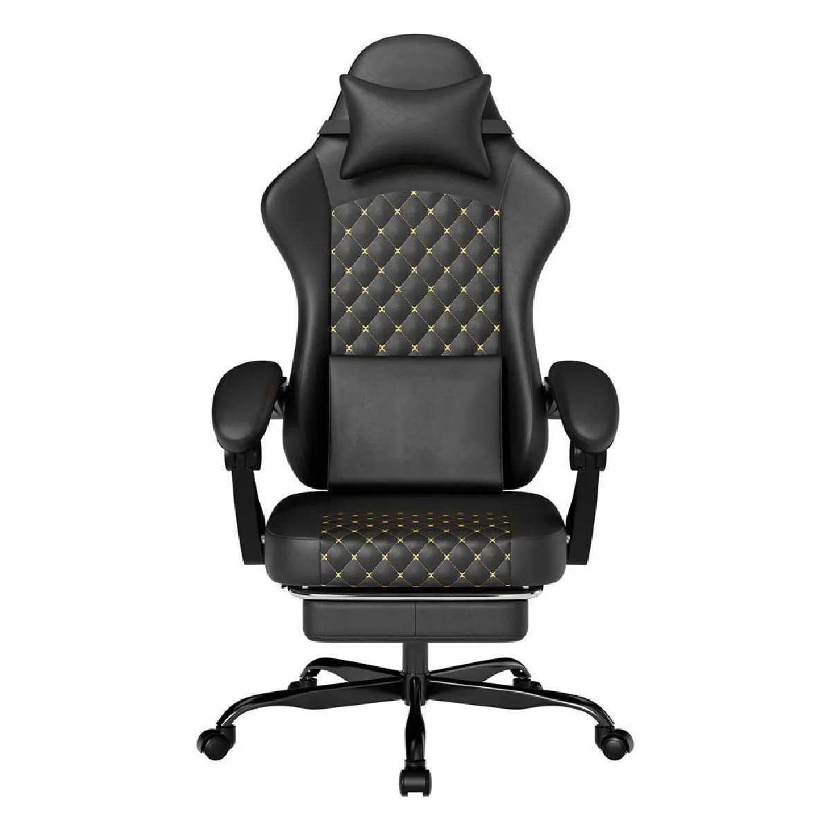 Pugsdrly Fauteuil de gaming en similicuir PVC - Noir |