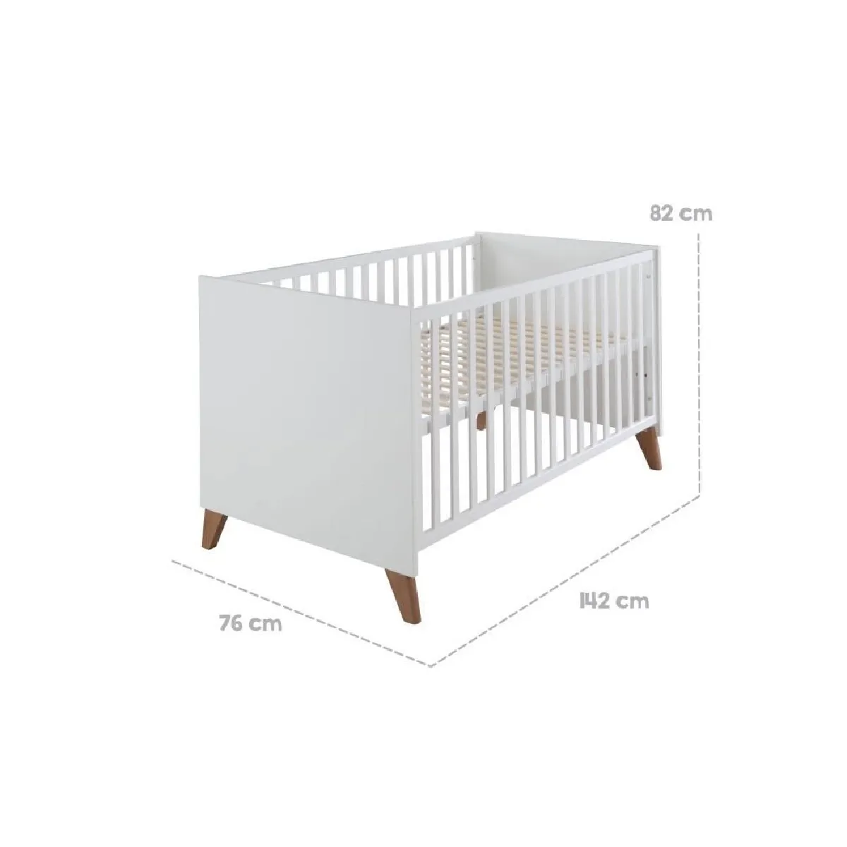 - Accessoires inclus : lit + sommier à lattes (côtés de conversion vendus séparément)