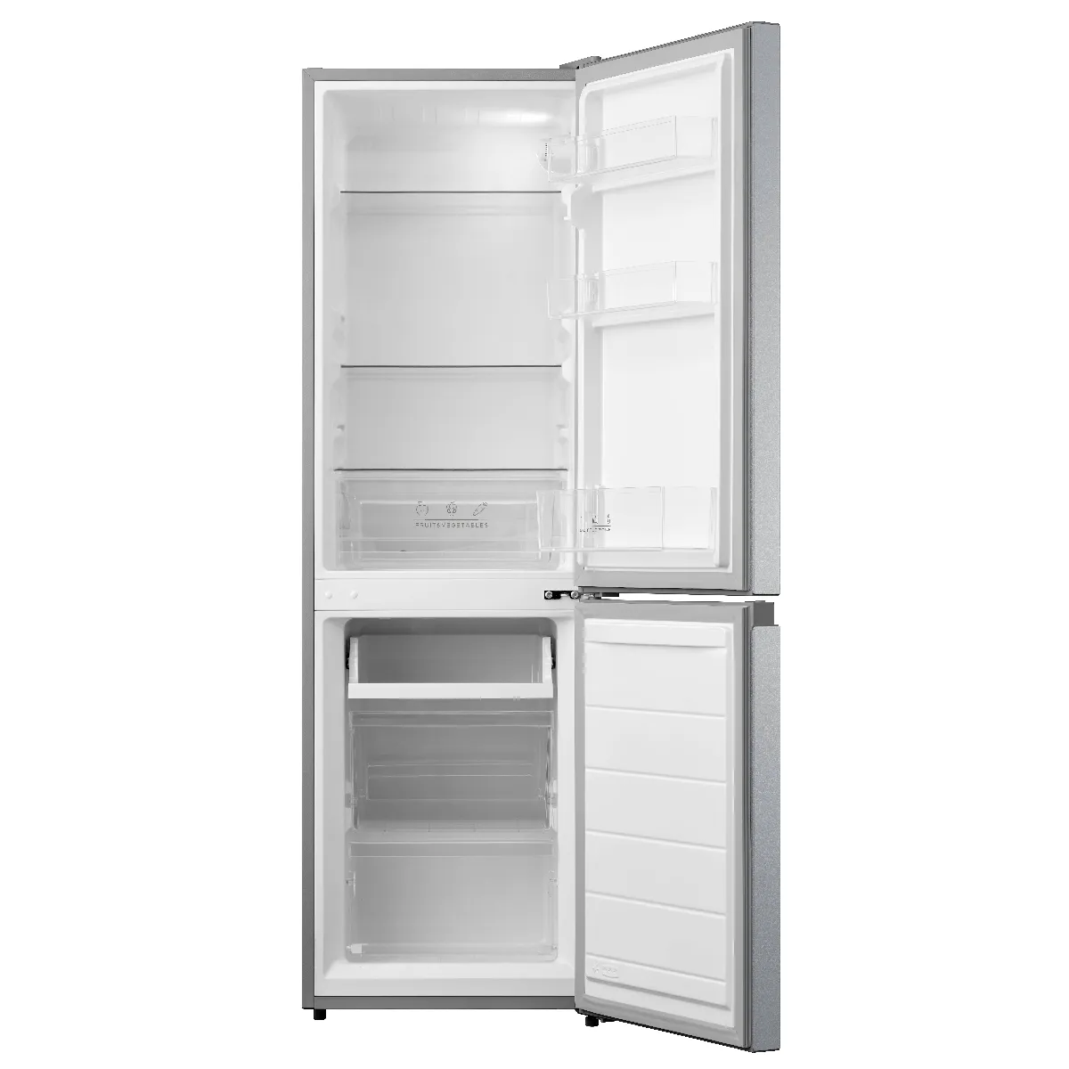 Le compartiment réfrigérateur dispose de 3 clayettes en verre résistantes, dun bac à légumes spacieux et de 3 balconnets de porte pour ranger facilement bouteilles, produits laitiers et condiments. Son éclairage LED intégré offre une visibilité parfaite à chaque ouverture, tout en consommant très peu dénergie. Le thermostat mécanique réglable vous permet dajuster la température simplement selon vos besoins et la saison.