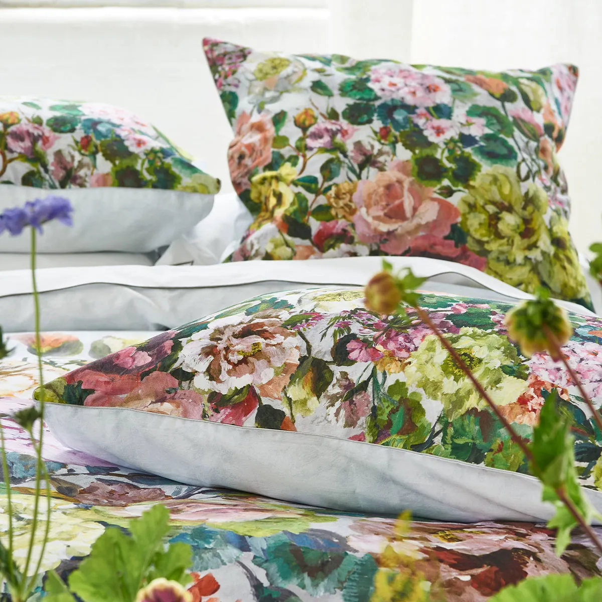 Designers Guild Housse de couette imprimée en satin de coton, GRANDIFLORA