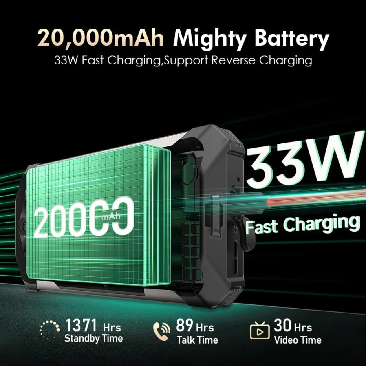La batterie super grande de 22000 mAh alimente le combiné et offre une grande capacité d'énergie pour que vous puissiez surfer sur Internet, écouter de la musique et jouer sans avoir à jouer souvent De plus, la charge OTG inversée est prise en charge pour les smartphones, les ordinateurs portables, etc.