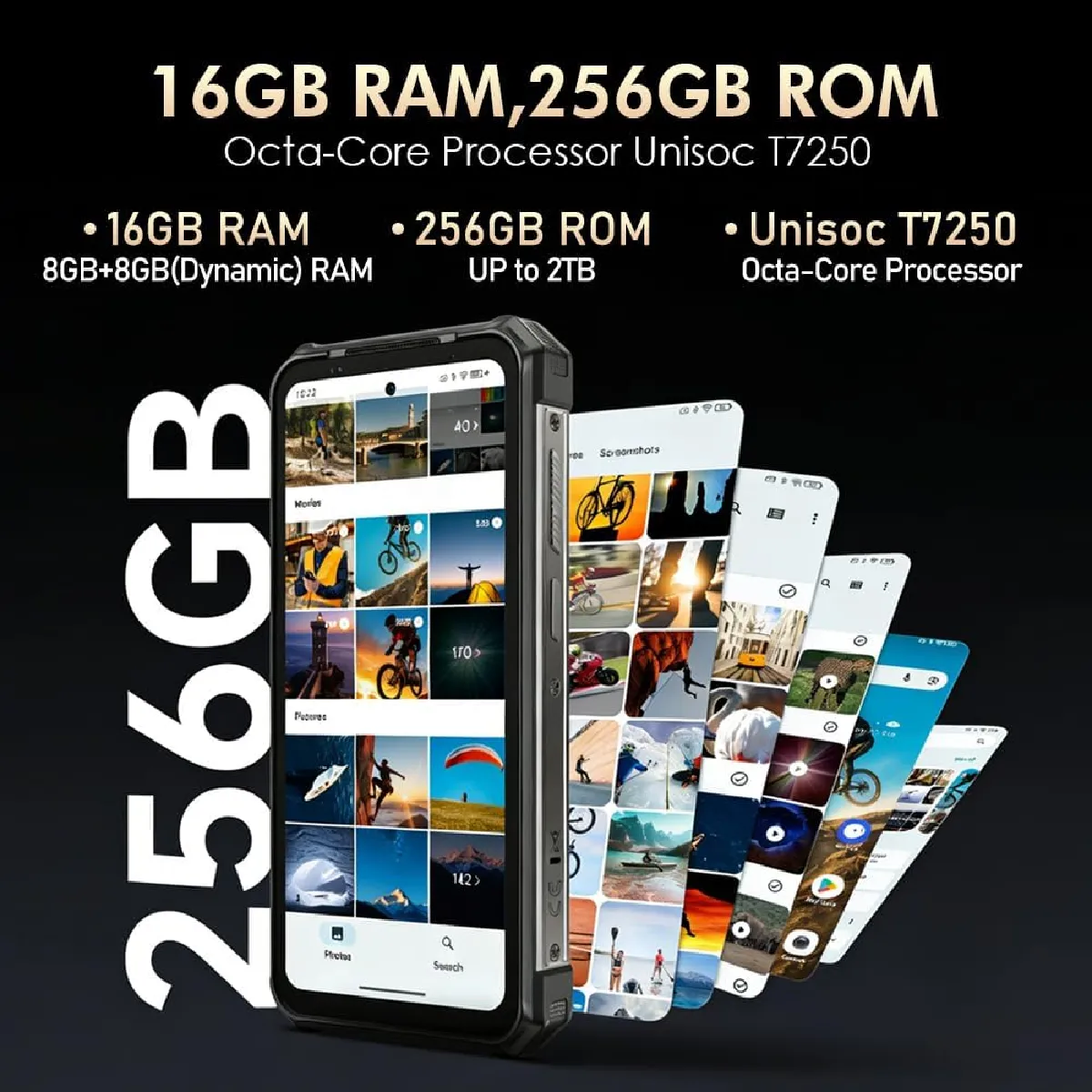Avec une mémoire de base de 8Go de RAM et 256Go de ROM, le téléphone Android Ulefone RUGKING 5 PRO se distingue par son caractère multitâche. Et le smartphone d'extérieur ulefone Rugking avec la technologie d'extension de la RAM, vous pouvez obtenir 8Go de RAM virtuelle supplémentaire via les paramètres, jusqu'à 16Go de mémoire vive. En outre, 256Go de mémoire interne plus une carte microSD jusqu'à 2To offrent suffisamment d'espace pour plus d'applications.