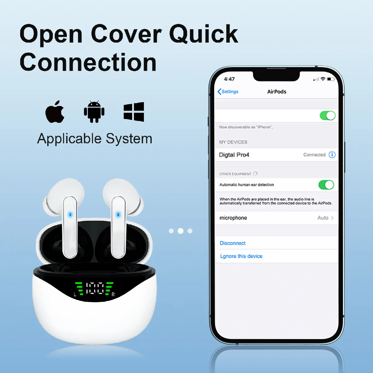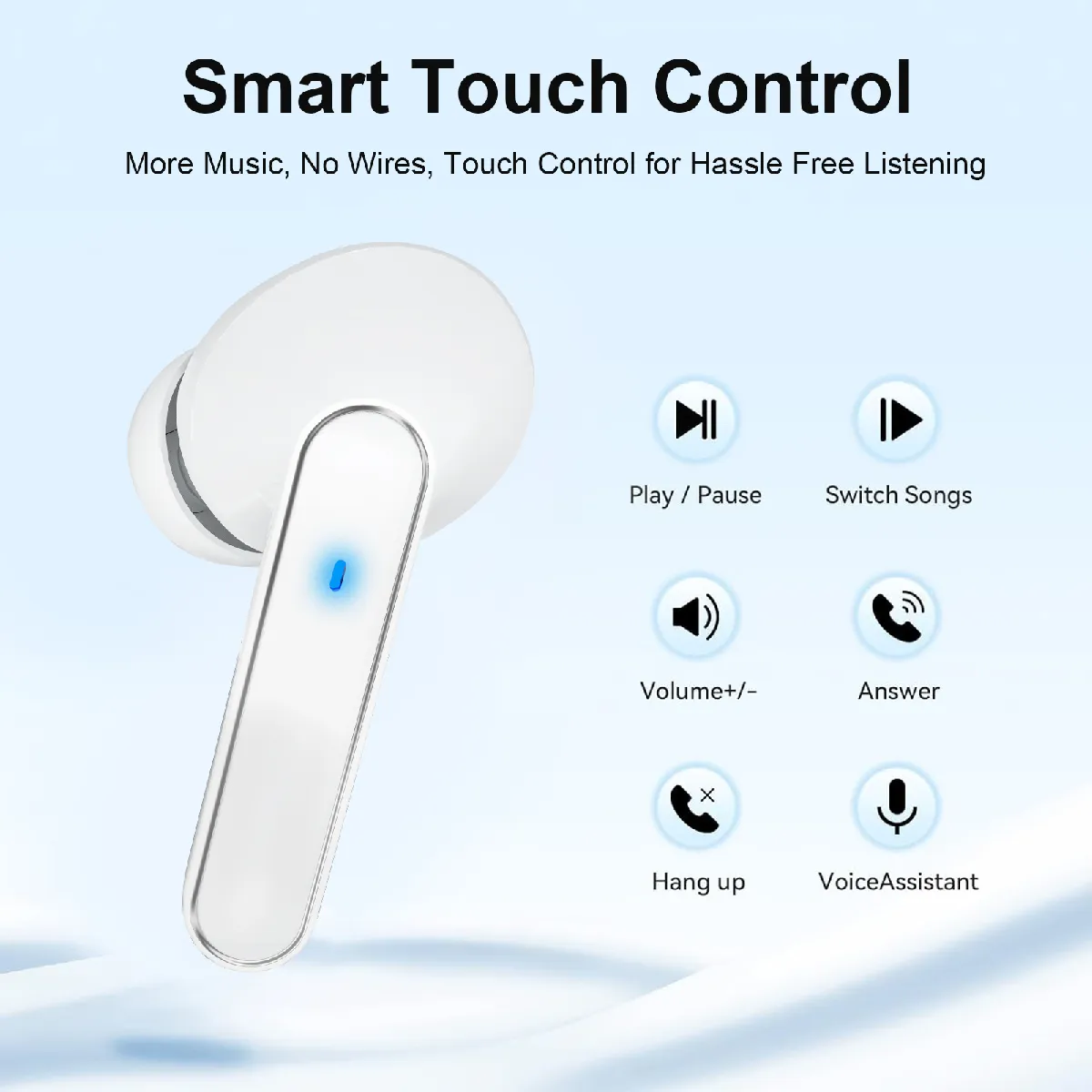 Confortables et portables : Conçus pour un confort tout au long de la journée, ces écouteurs sans fil sont légers et de forme ergonomique pour s'adapter en toute sécurité à vos oreilles. L'étui de chargement compact et élégant se glisse facilement dans votre poche ou votre sac, ce qui le rend pratique pour transporter vos écouteurs partout où vous allez. La finition blanche élégante ajoute une touche d'élégance à votre style de tous les jours. Avec une distance de travail de 10 mètres, vous pouvez vous déplacer librement sans perdre la connexion.