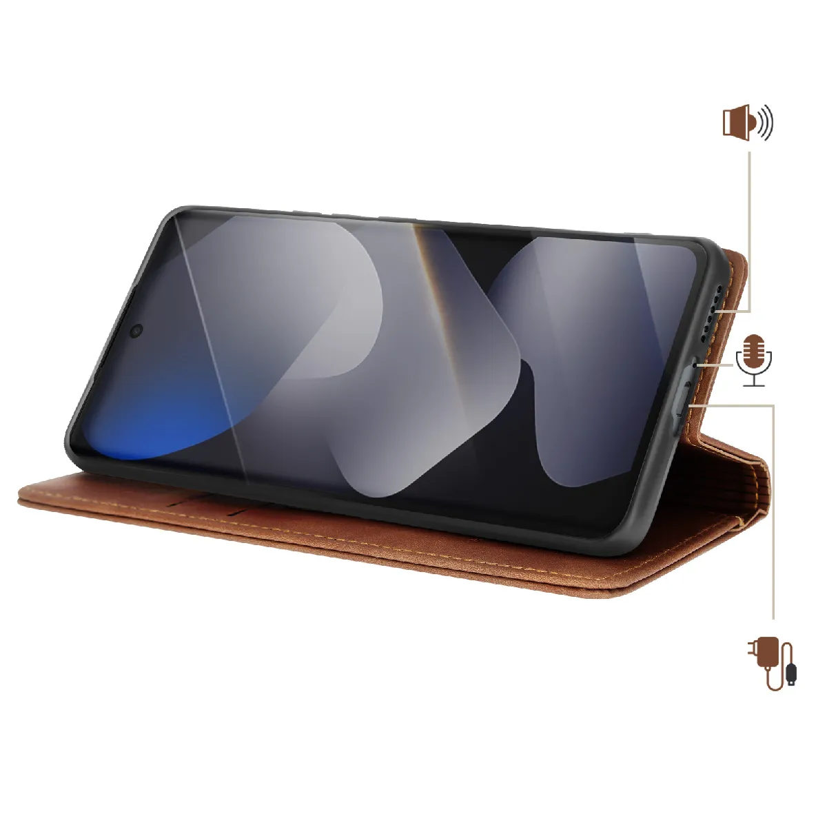 Protection complète grâce au rabat magnétique et à la coque interne souple qui absorbe les chocs et protège efficacement le smartphone contre les chutes et rayures du quotidien