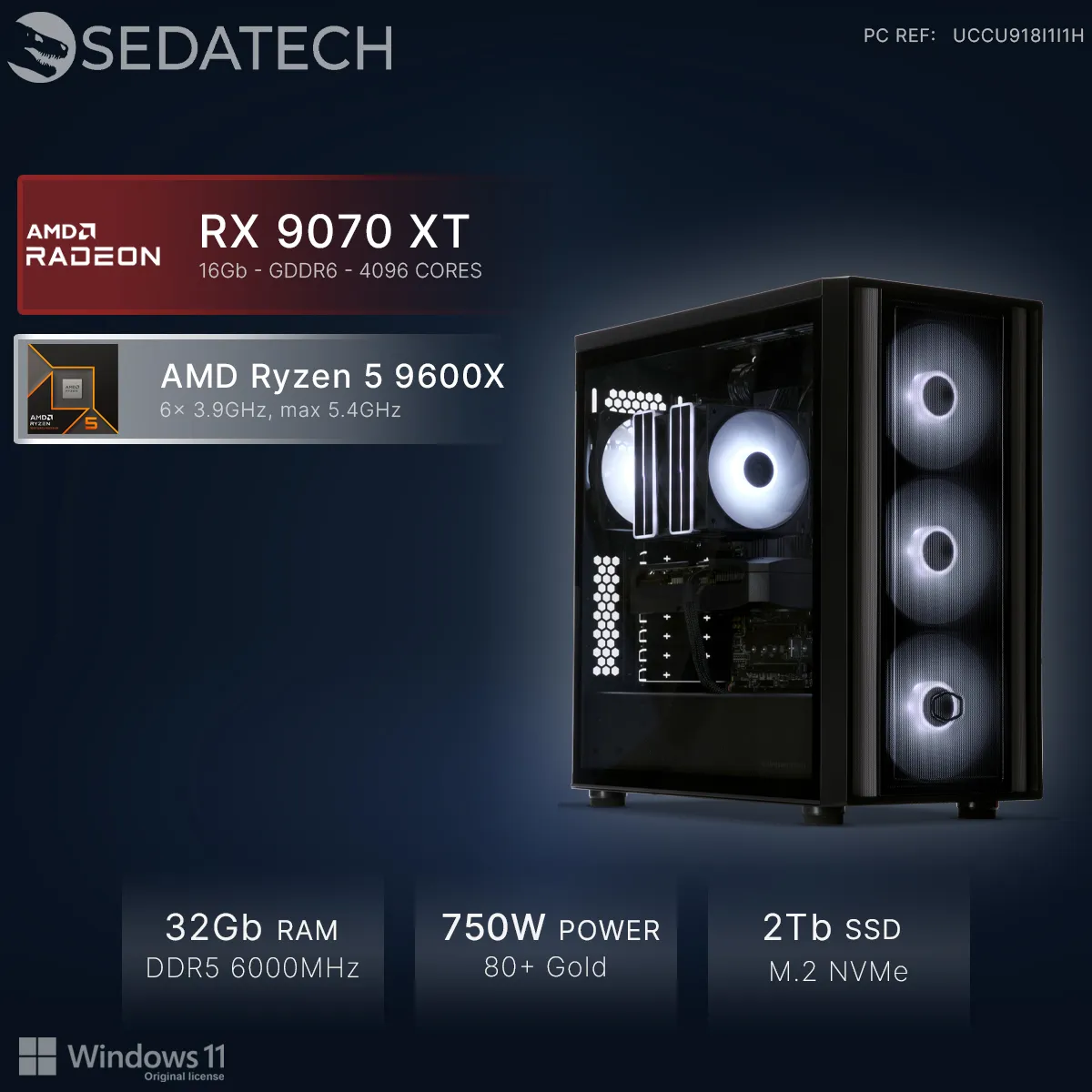 Sedatech PC Gamer, AMD Ryzen 5 9600X, RX 9070 XT, 32Go DDR5, 2To SSD, Win 11