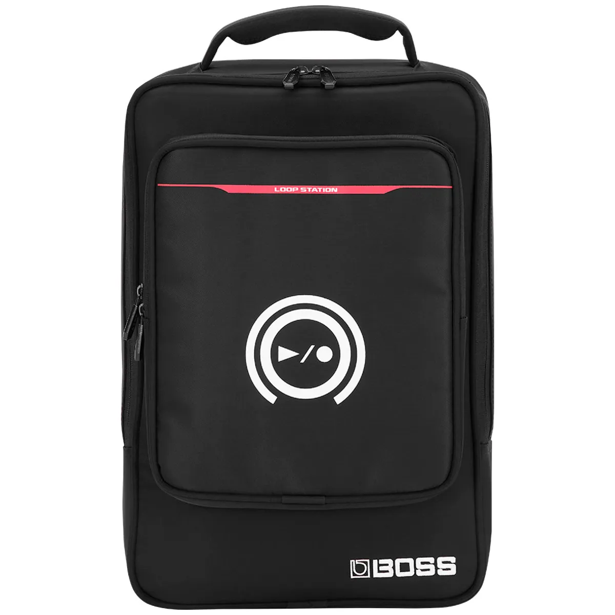 Modèle Boss CB-RC505, sac à dos de transport pour Loop Station RC-505/RC-505MK2, extérieur nylon résistant et intérieur polyester rembourré, bretelles et poignée rembourrées, poches pour accessoires et compartiment ordinateur/tablette.