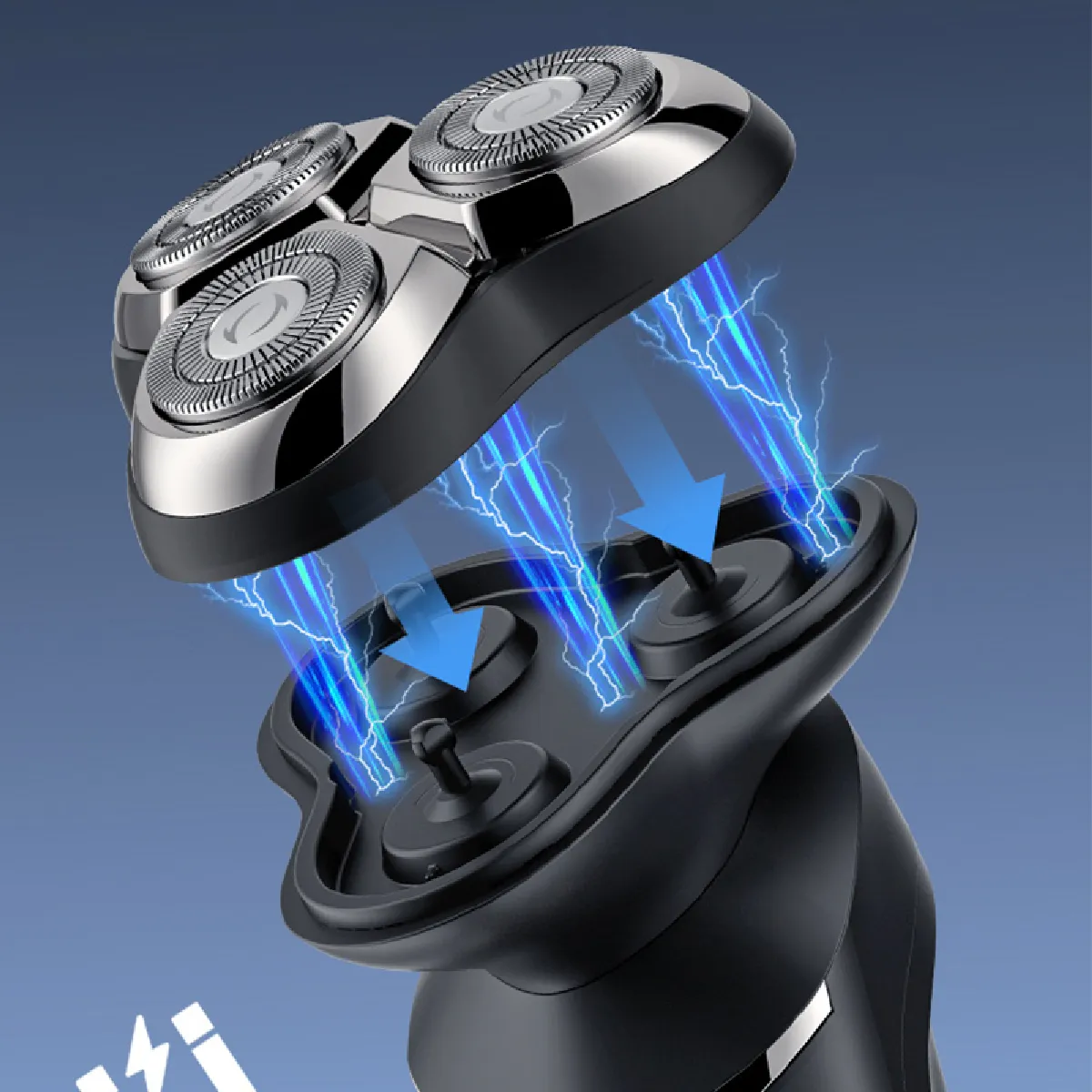 Rasage de près et confortable : Profitez d'un rasage remarquablement précis et confortable grâce aux trois têtes flottantes de notre rasoir électrique. Ces têtes glissent sans effort le long des contours de votre visage, capturant les poils de toutes longueurs et directions. Le résultat est un rasage doux, sans irritation, qui laisse votre peau fraîche et revitalisée. Profitez d'une expérience de rasage supérieure à chaque fois, sans les coupures et entailles associées aux rasoirs traditionnels. Parfait pour un usage quotidien et les peaux sensibles.