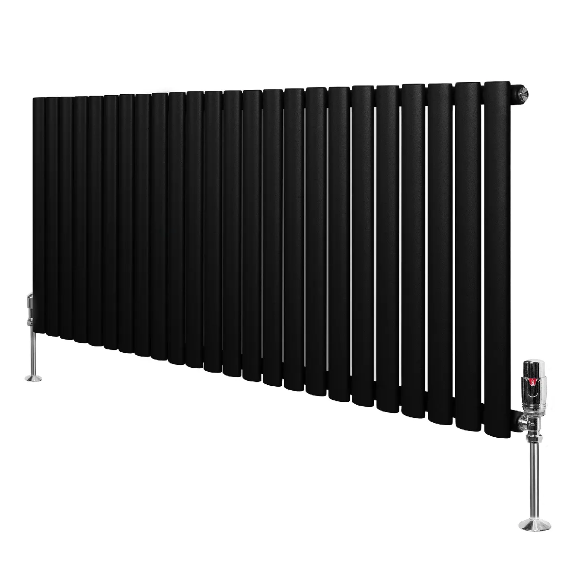 Monstershop Radiateur Ovale 1 Panneau & Vannes 600 x 1440 mm en Acier Noir Horizontale |