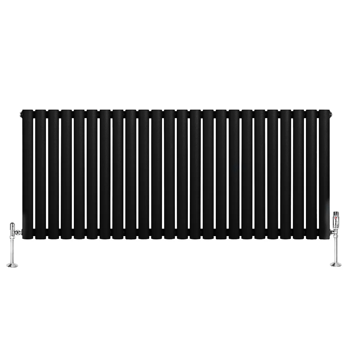 Monstershop Radiateur Ovale 1 Panneau & Vannes 600 x 1440 mm en Acier Noir Horizontale