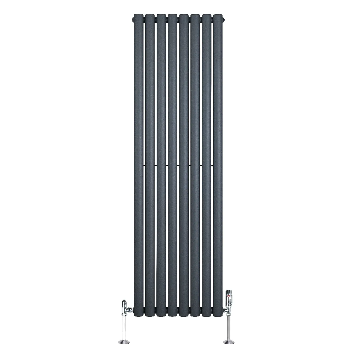 Monstershop Radiateur Ovale 1 Panneau & Vannes 1600 x 480 mm en Acier Anthracite Horizontale |