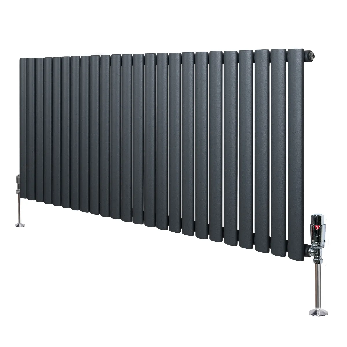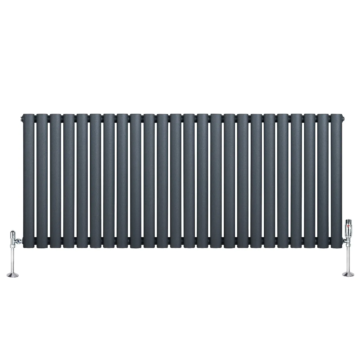 Monstershop Radiateur Ovale 1 Panneau & Vannes 600 x 1440 mm en Acier Anthracite Horizontale |