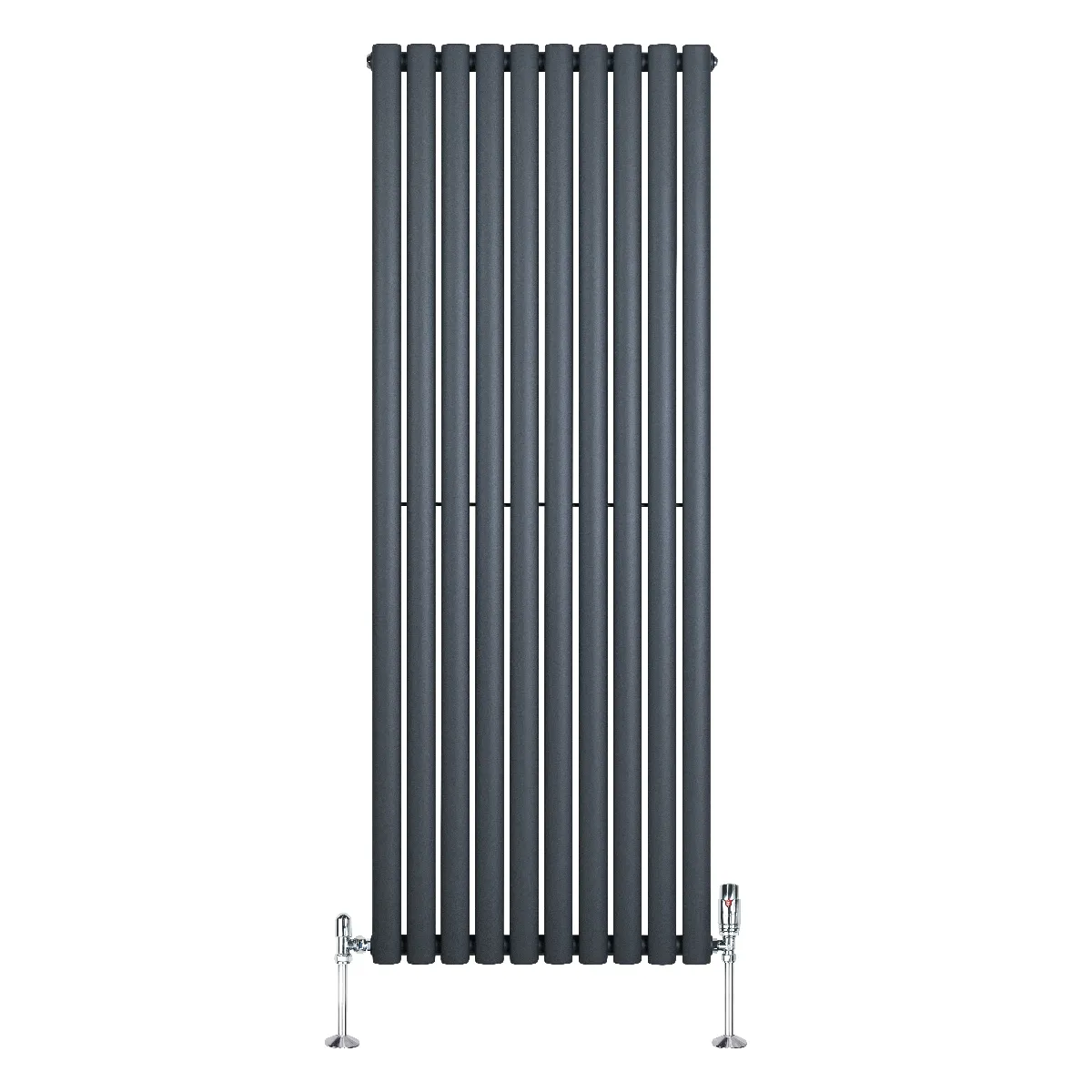Monstershop Radiateur Ovale 1 Panneau & Vannes 1600 x 600 mm en Acier Anthracite Horizontale