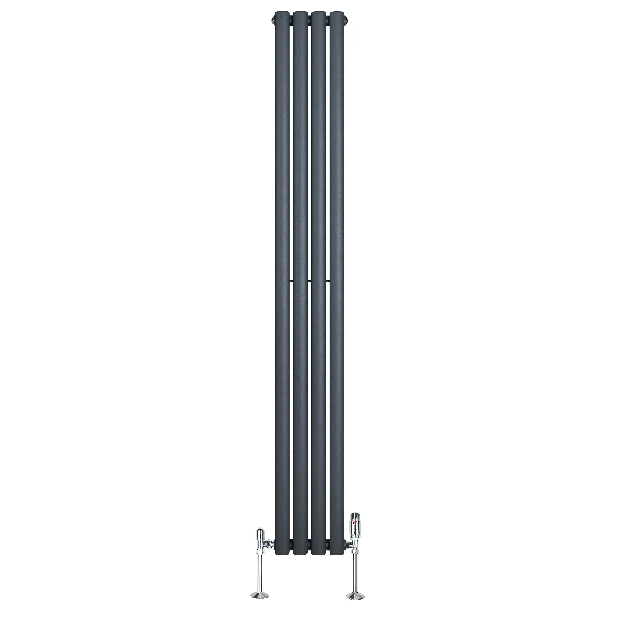 Monstershop Radiateur Ovale 1 Panneau & Vannes 1800 x 240 mm en Acier Anthracite Horizontale |