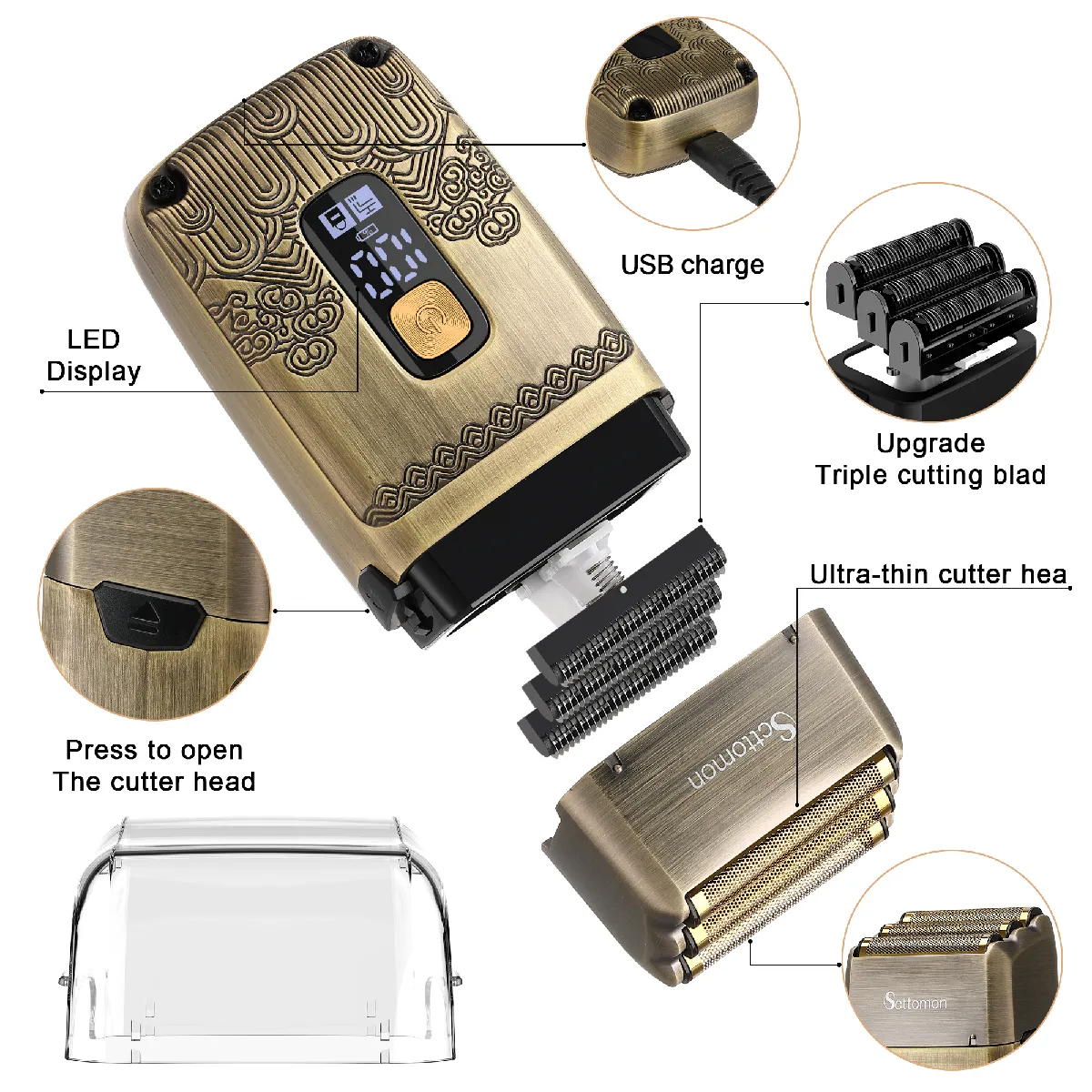 Hatteker RSCW-767 Tondeuse Cheveux et Barbe 3 en 1 Rasoir électrique Bronze |