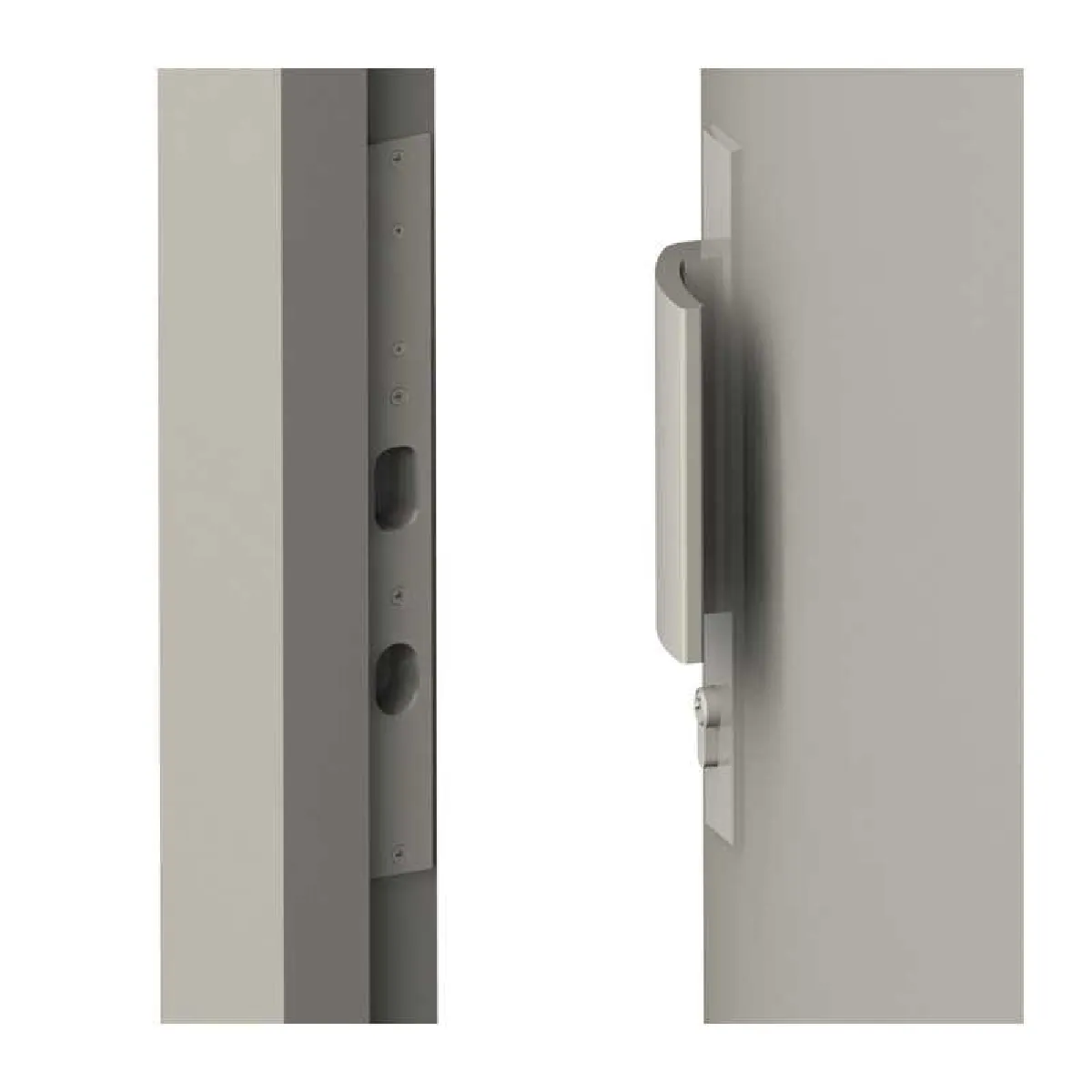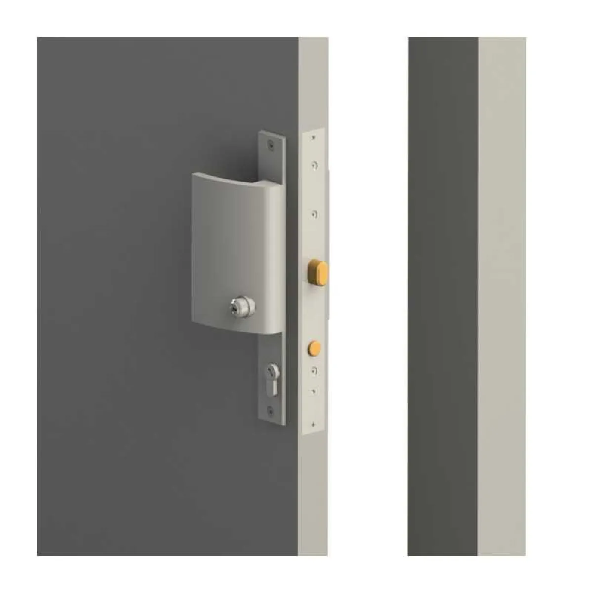 - Montage latéral sur louvrant, vue droite sur la face de la platine