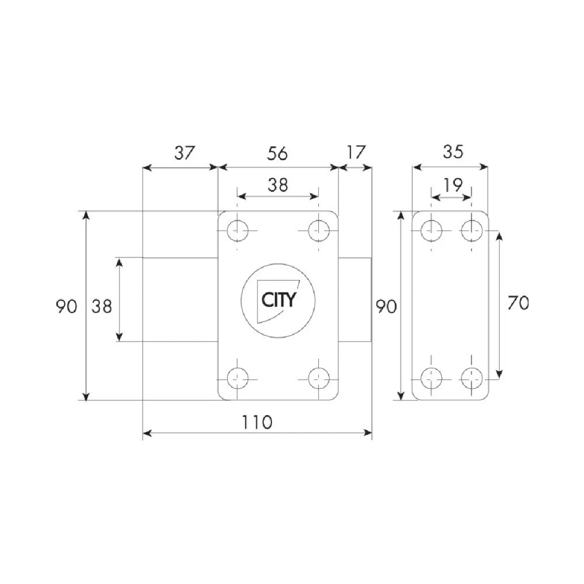 Le verrou à bouton ISEO CITY 25 est conçu pour offrir une fermeture fiable et discrète sur la porte. Son coffre rectangulaire à finition doré bronze et son bouton central en laiton chromé marqué CITY apportent une intégration soignée et élégante.