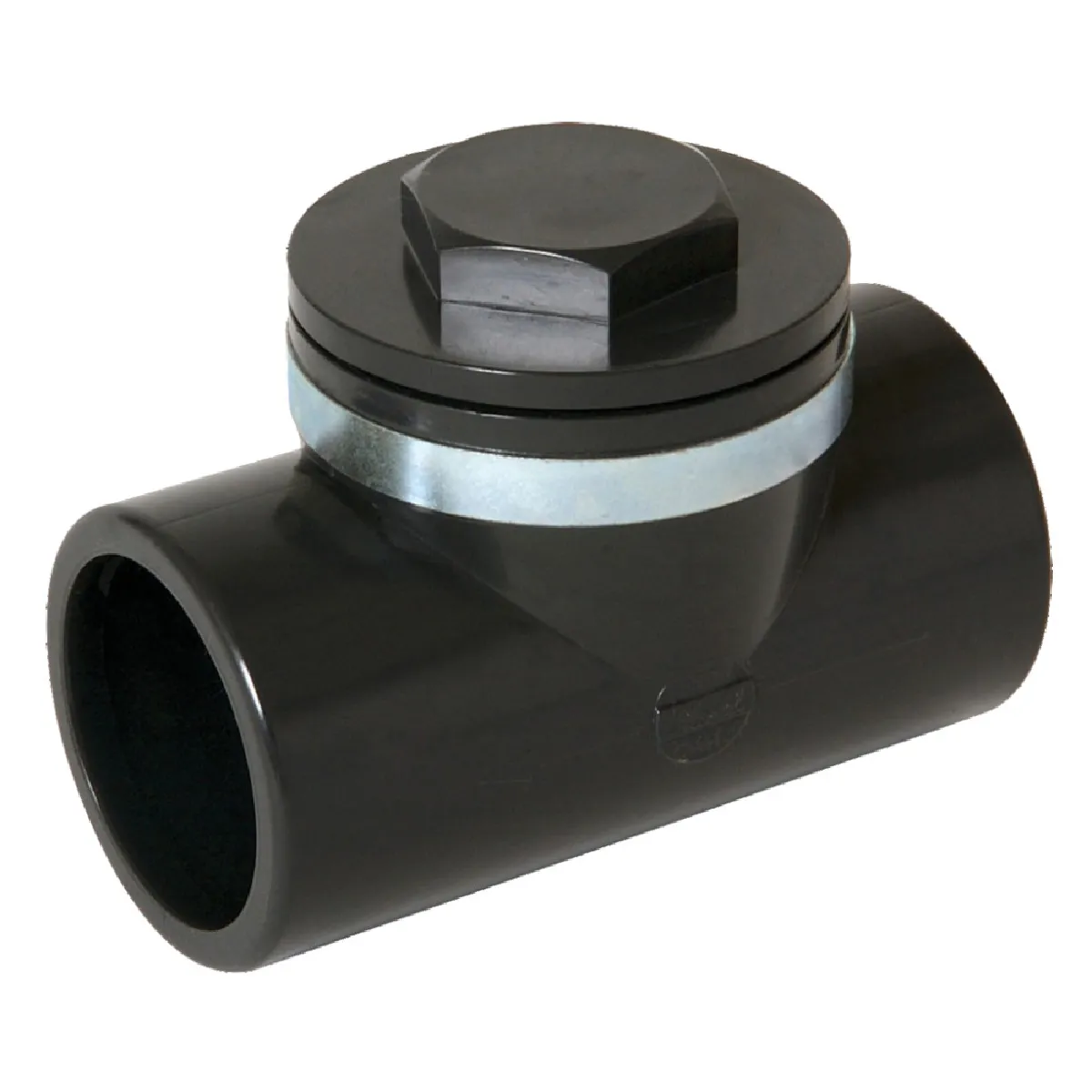 Le clapet anti-retour NICOLL CARH se distingue par sa forme compacte, sa couleur noire et sa conception fonctionnelle pour les circuits deau en pression. Les raccords à manchon facilitent lassemblage sur le réseau, tandis que la structure à clapet offre une solution simple pour le contrôle du sens découlement.