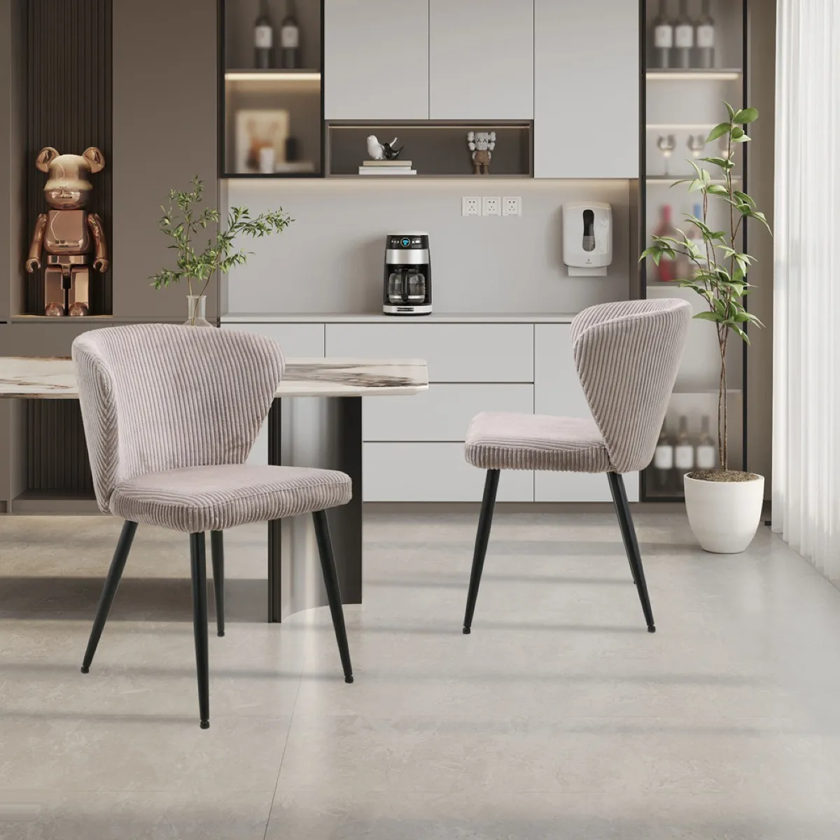 JLC KREATION Chaise de salle à manger en velours côtelé beige DOROT (lot de 2)