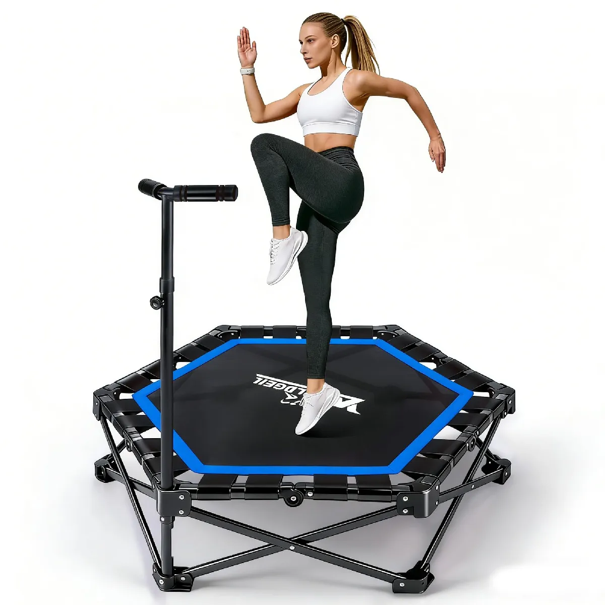 ZMH Trampoline D'intérieur Pliable D. 86,5 Cm Avec Guidon Max. 150kg Bleu |