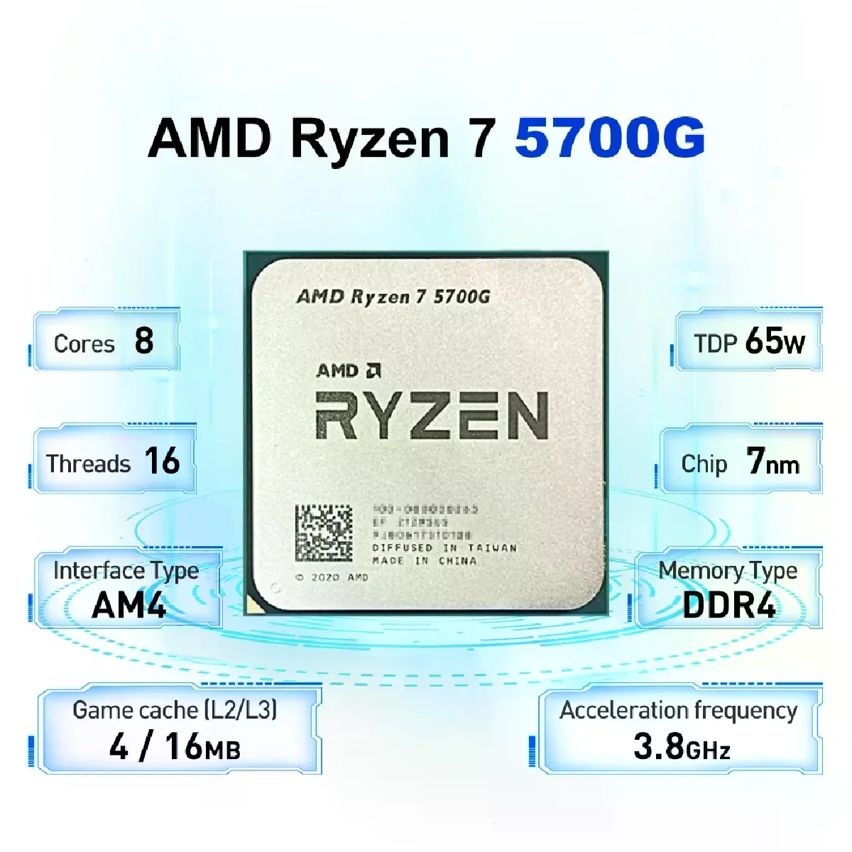 AMD Ryzen 5 5700G 3.8GHz prise 8 coeurs 16 filetages AM4 7NM L3=16M processeur 65W DDR4 sans ventilateur