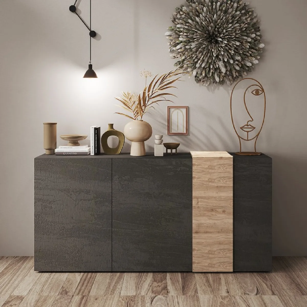 Buffet - VENEZIA - 3 portes - Gris titan mat - Chene Cadiz - 181 x 44 x 84 cm