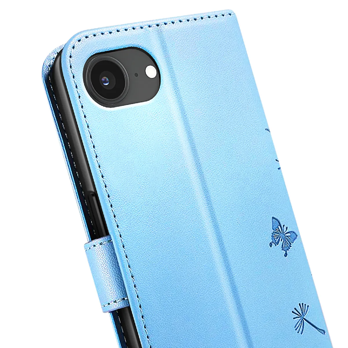 Protégez votre iPhone 17e avec élégance grâce à cet étui portefeuille Zanaé bleu clair. Son similicuir haut de gamme est décoré d'un motif pissenlit et papillon gravé pour un style raffiné. Il offre une protection complète avec coque intérieure souple, fermeture magnétique, rangements pour cartes et billets, ainsi qu'un support vidéo pratique pour vos contenus multimédia.