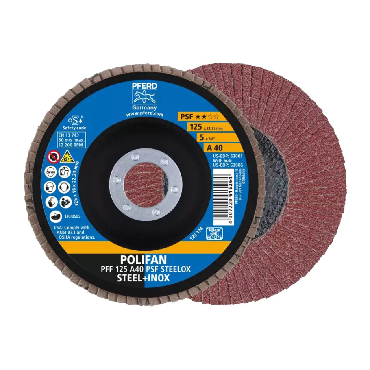 Disques à lamelles POLIFAN PFF 125 A40 PSF STEELOX PFERD 67644125