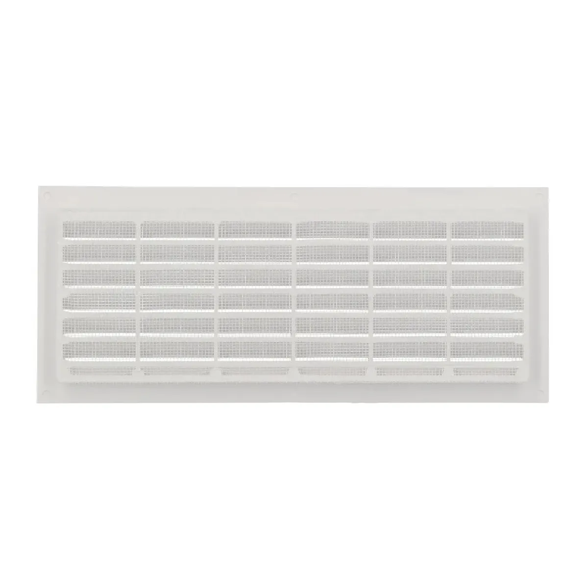 Grille d’aération rectangulaire NICOLL 1B111, blanche, moustiquaire intégrée, 108 x 254 mm, à visser ou coller