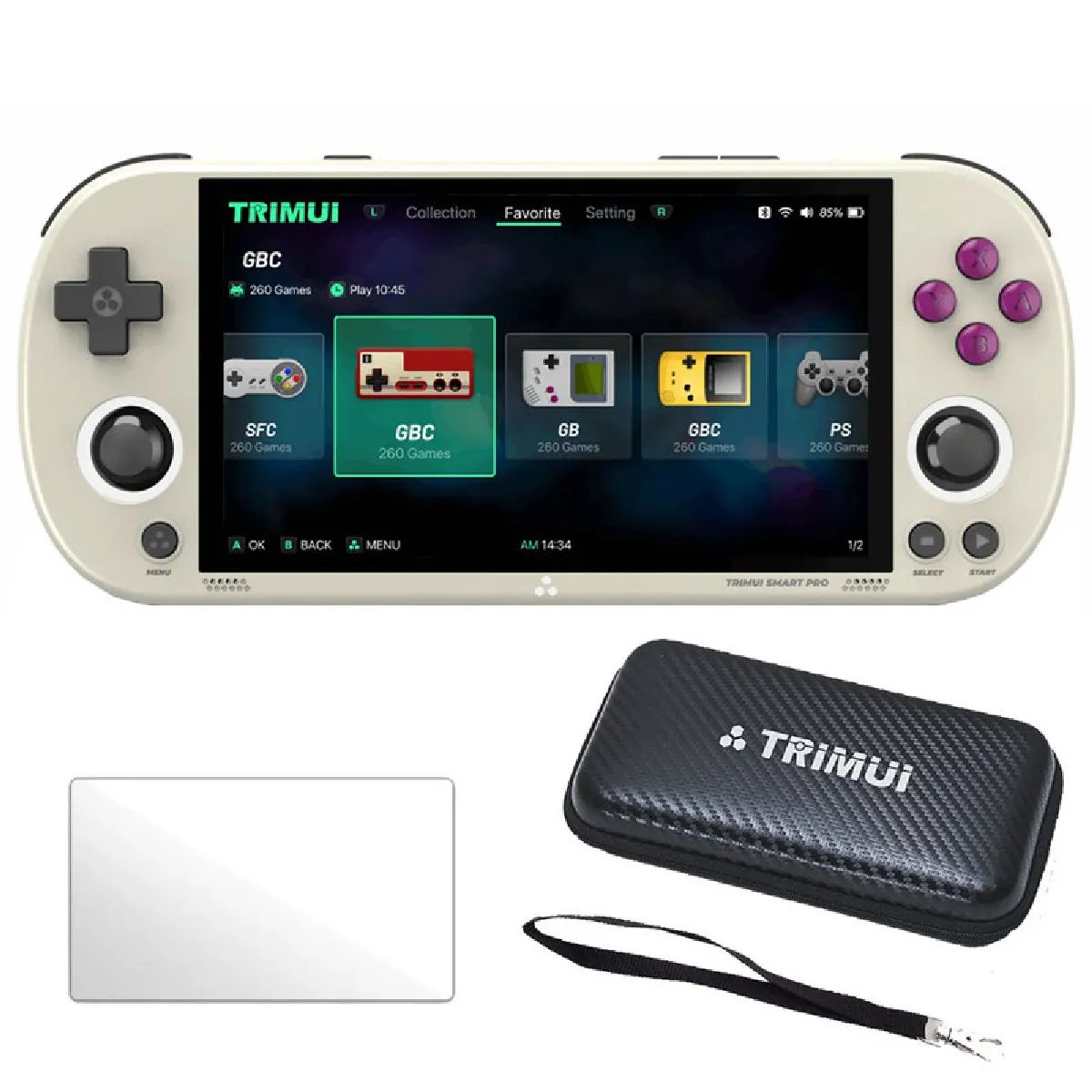 Trimui Smart Pro 4,96" IPS Linux avec étui de transport et verre trempé - Gris |