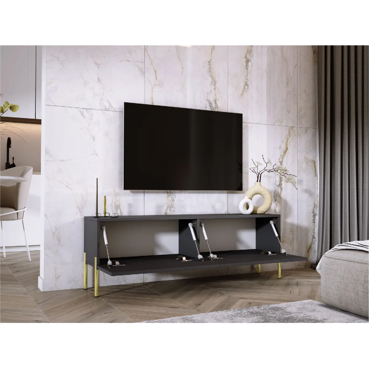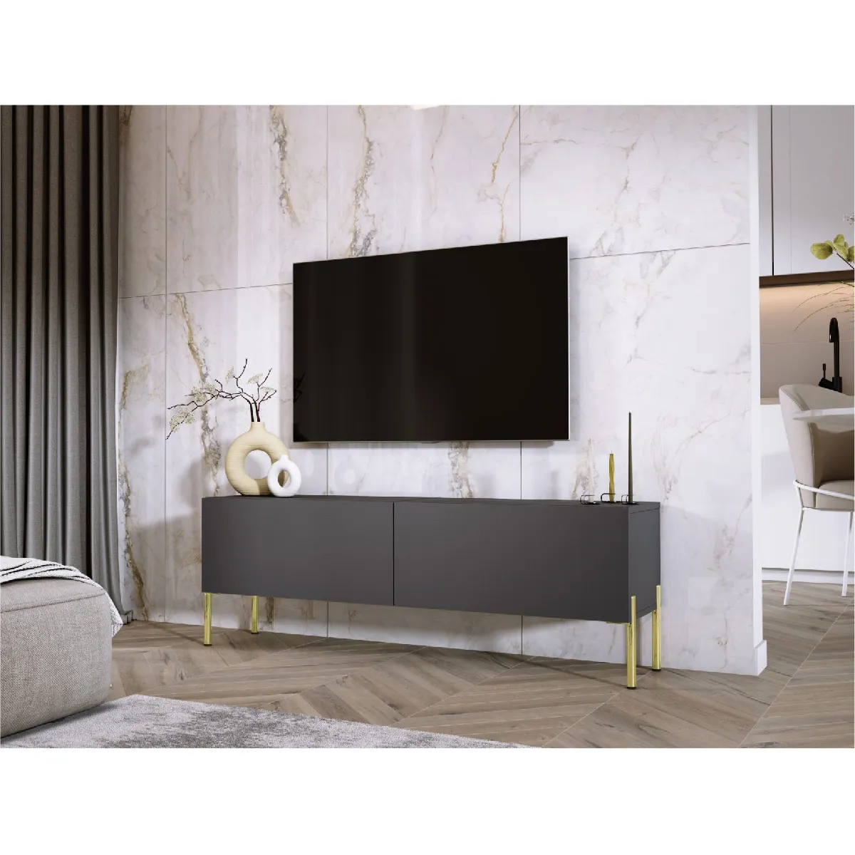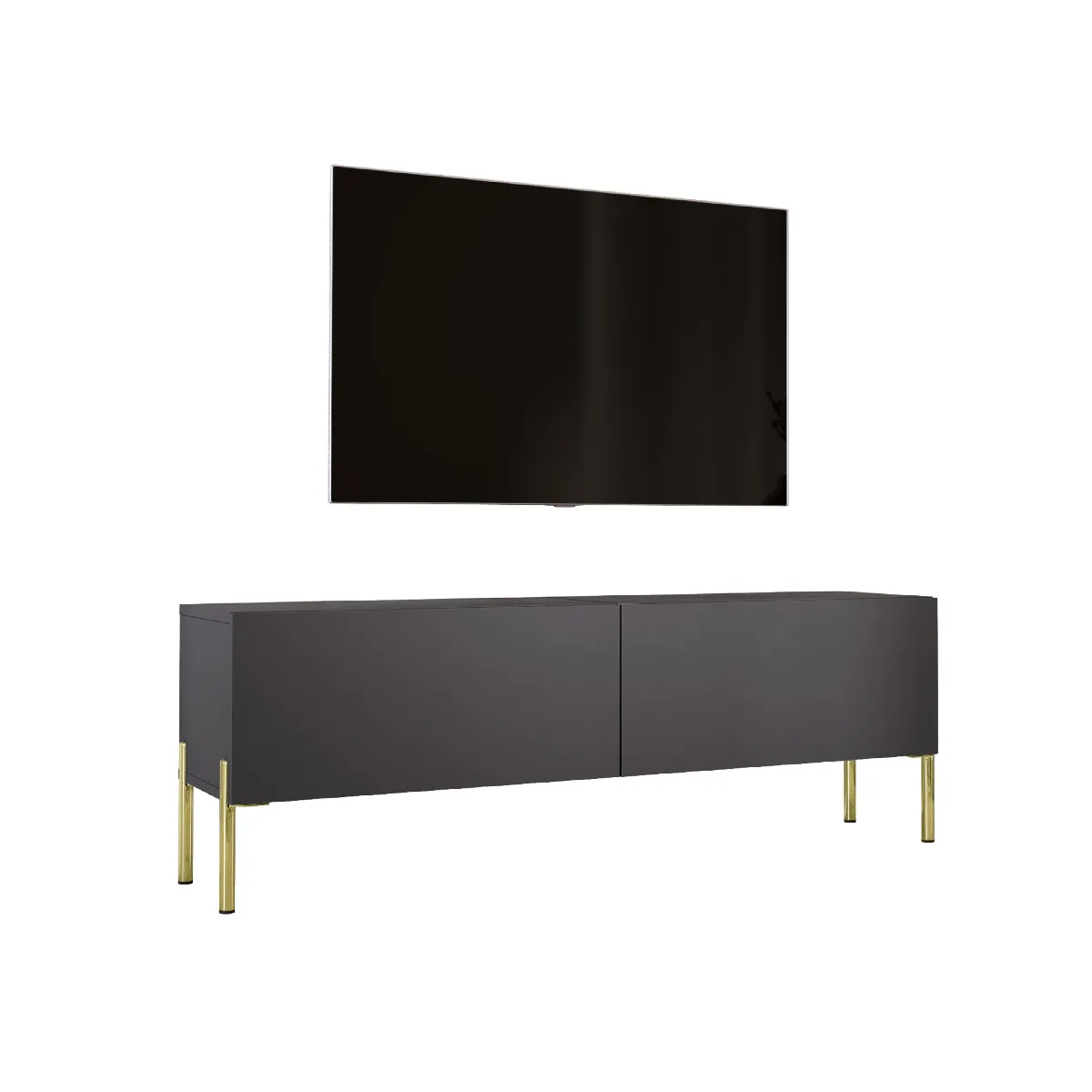 3XELIVING Meuble TV : Anthracite, pieds dorées, 140 x 52 x 32 cm