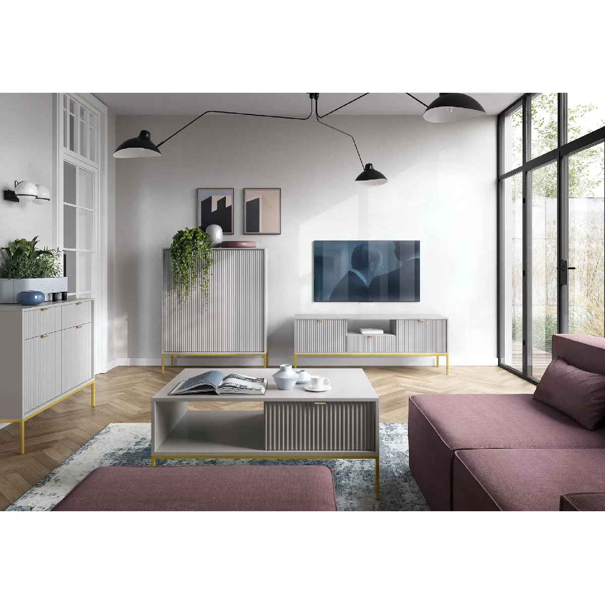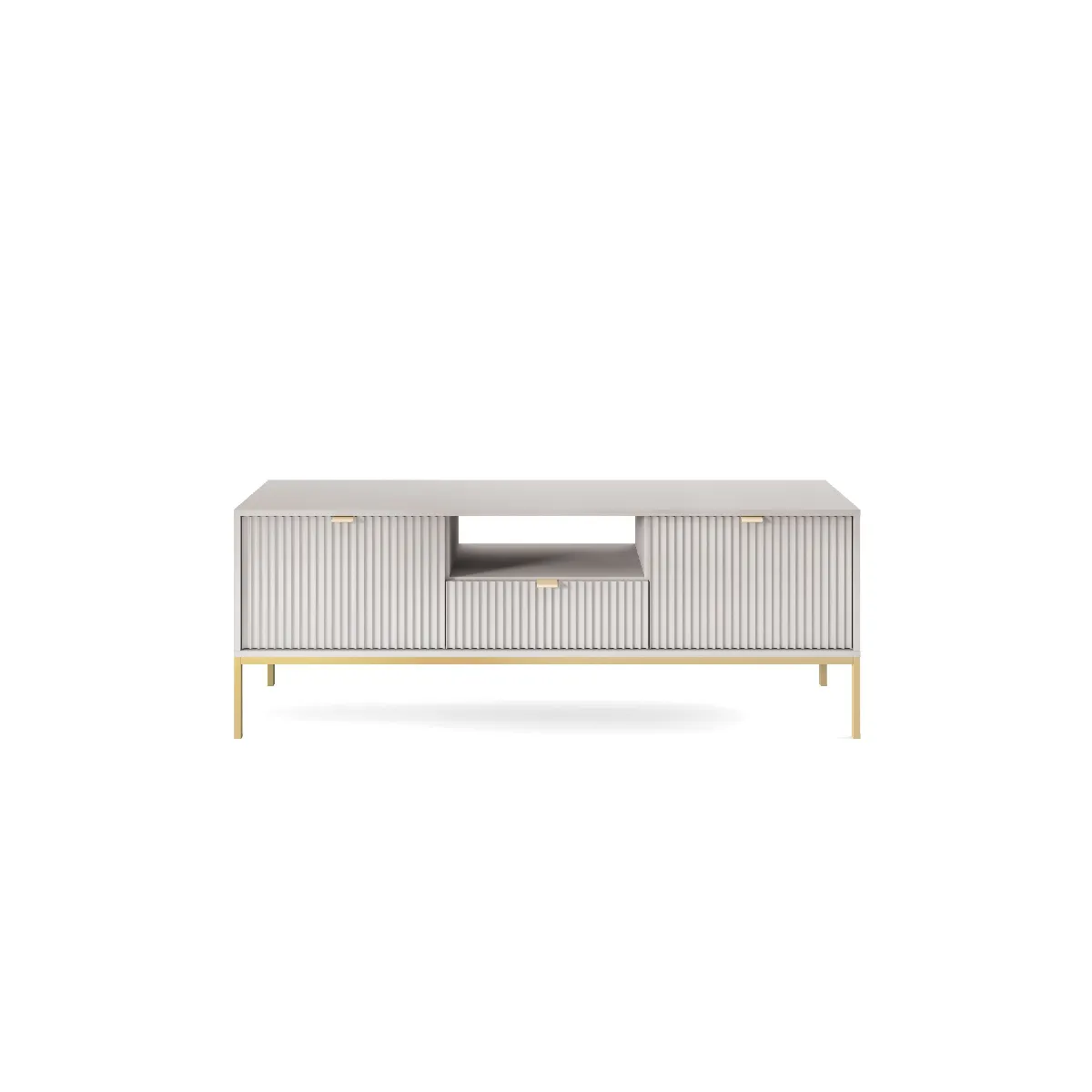 3XELIVING Meuble TV : Gris, or, 154 x 56 x 39 cm, poignées dorées |