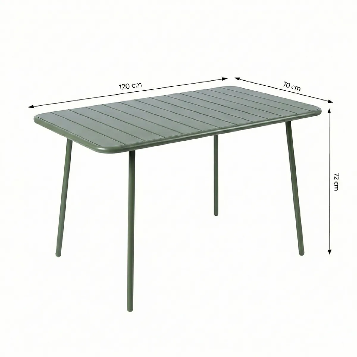 Dimensions- Dimensions totales de la table (L x l x H) : 120 x 70 x 72 cm