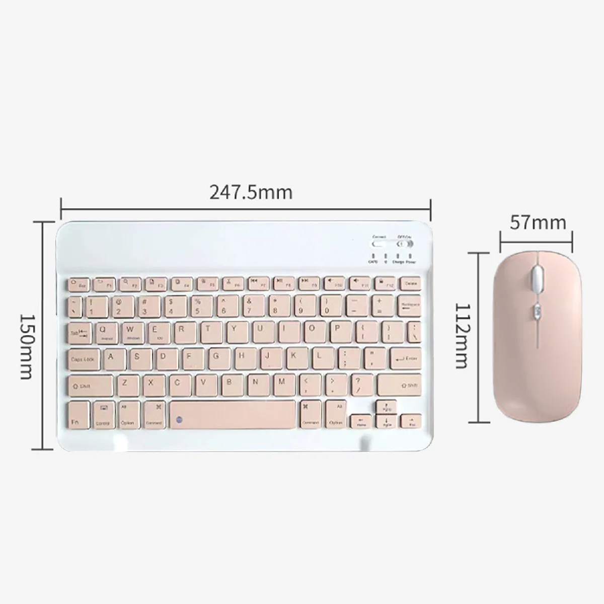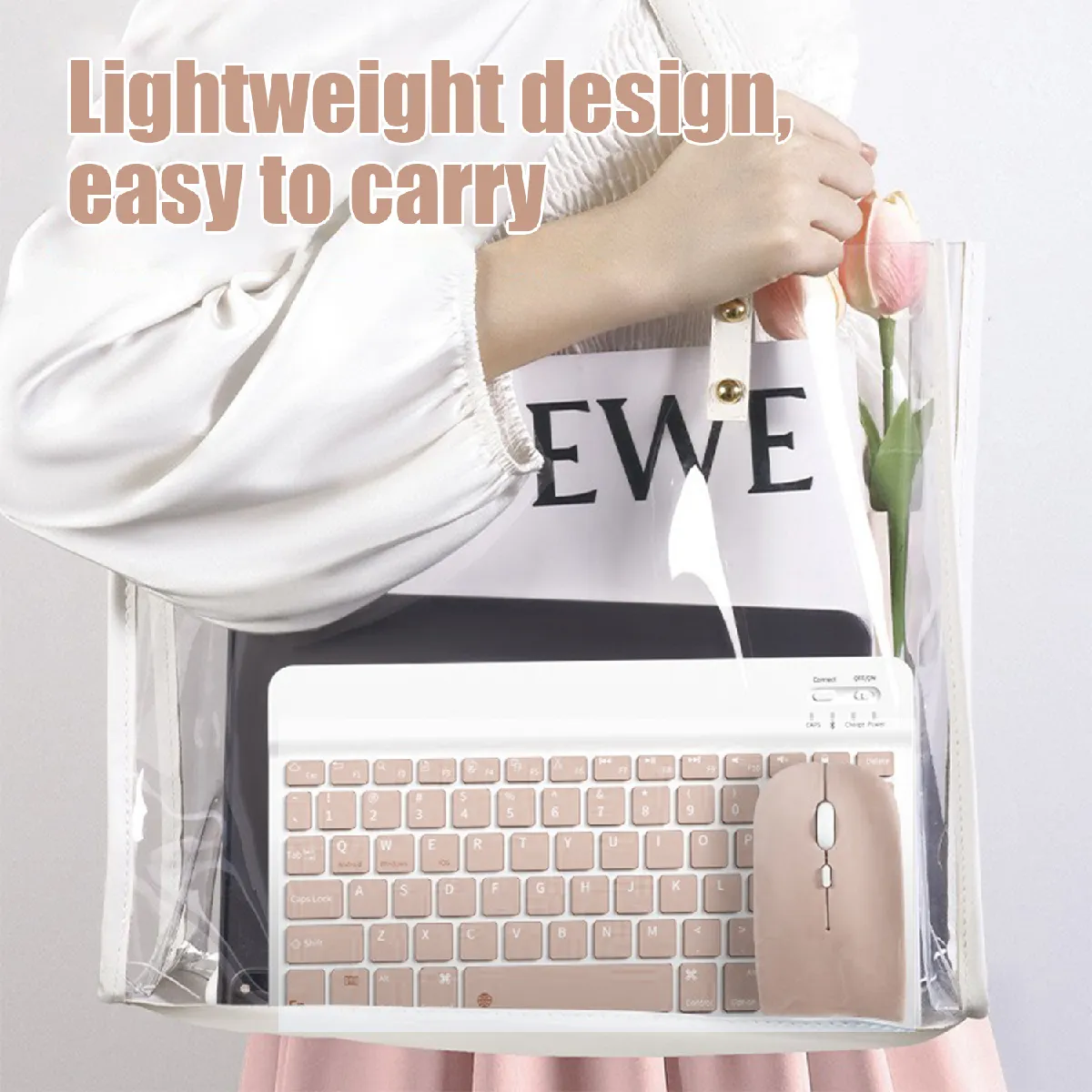 INF Ensemble clavier et souris Bluetooth rechargeables de 10 pouces avec étui (rose)