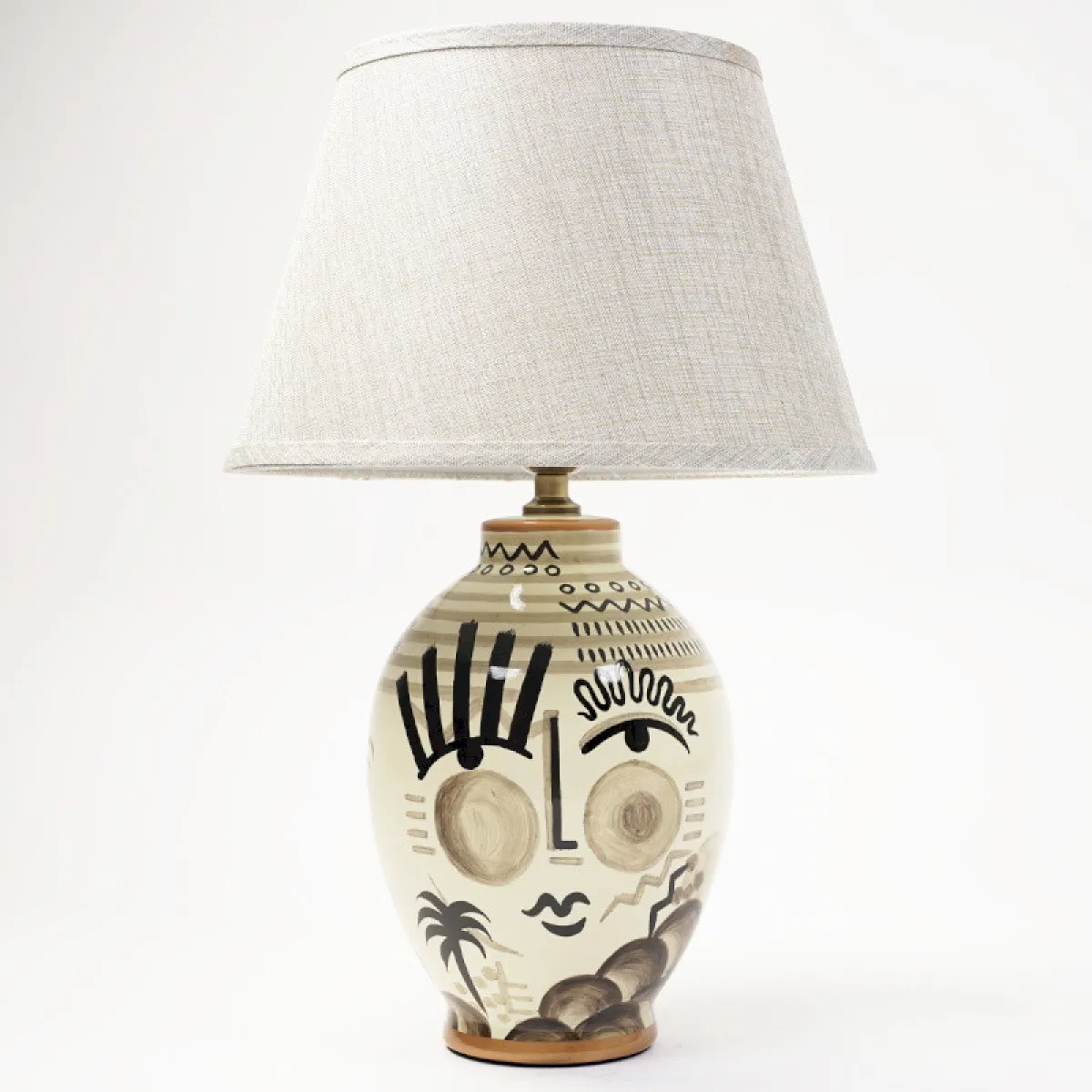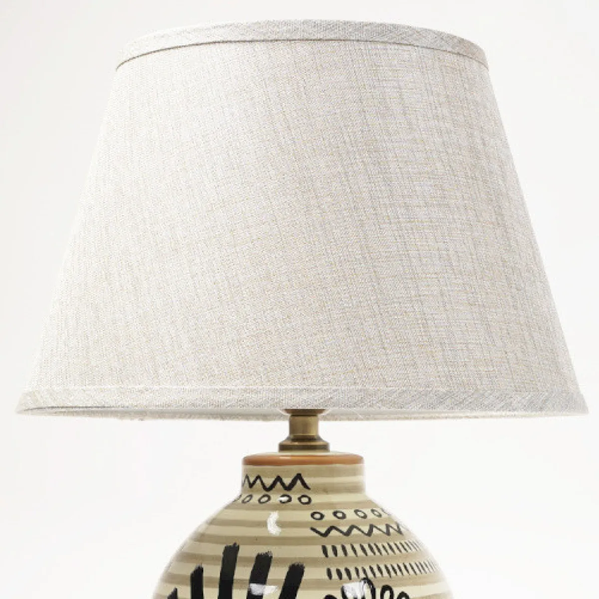 Lampe à poser en céramique IRMA avec abat jour. Dimensions : L 41 x P 41 x H 64 cm Structure : base céramique - coloris beige/noir - abat jour Ampoule LED à filament E27 non fournie.