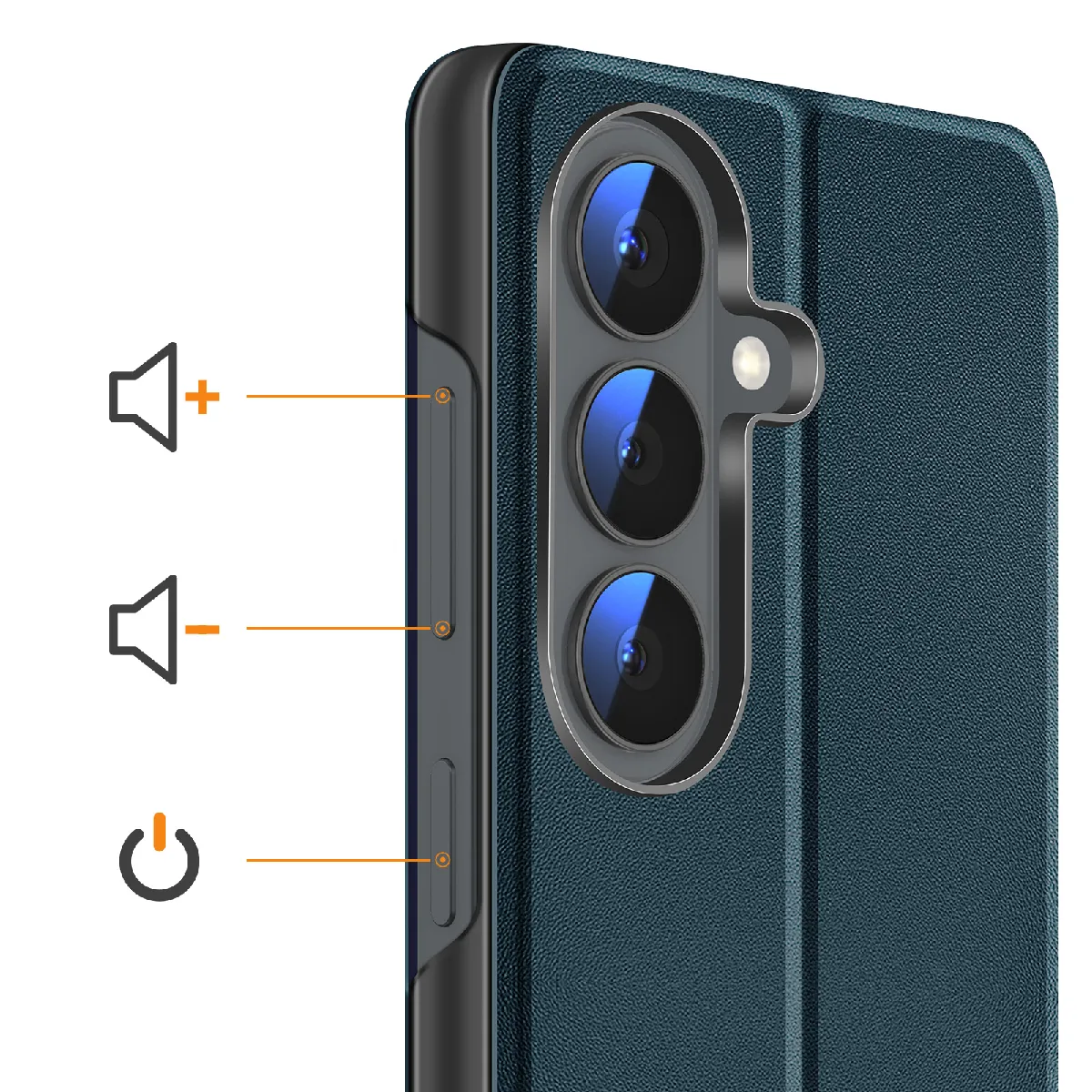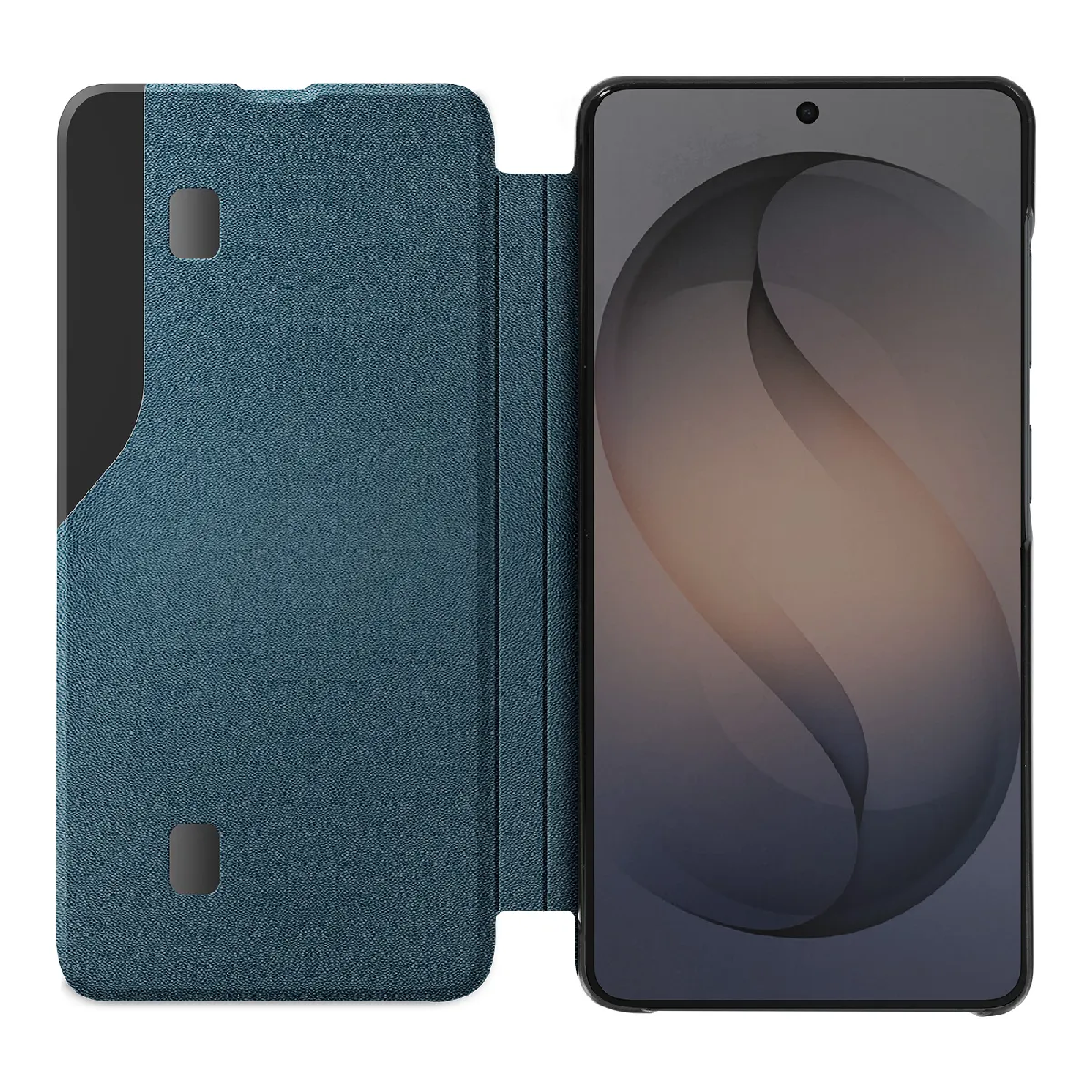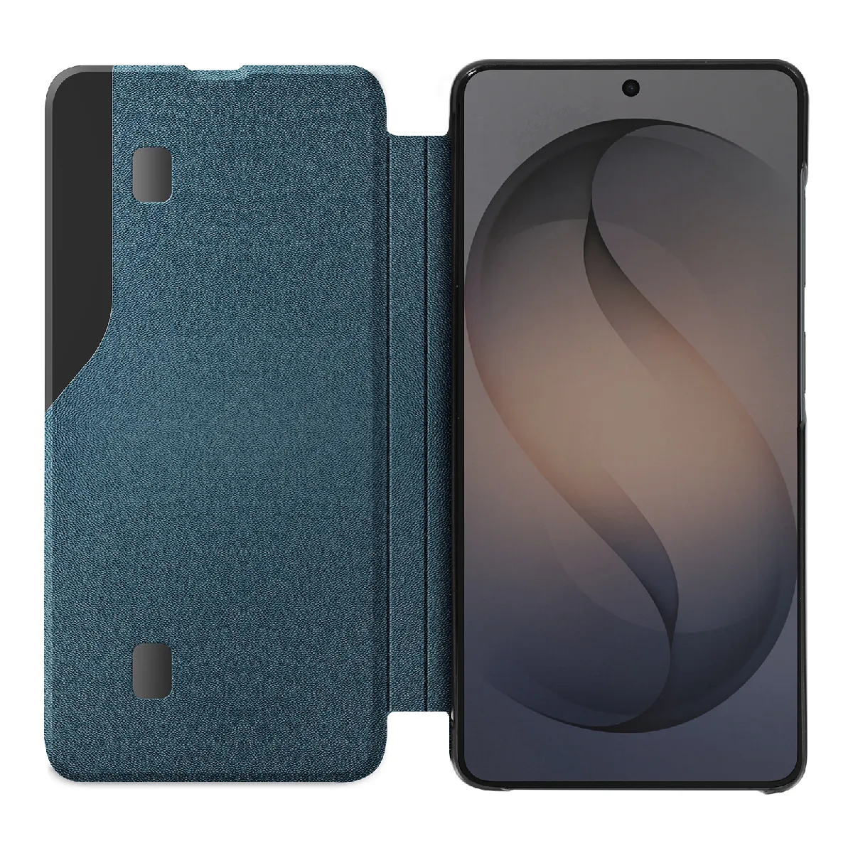 Protégez votre Samsung Galaxy S26 avec cet étui clapet slim bleu canard. Son revêtement effet cuir offre une prise en main agréable tandis que la coque interne rigide maintient l'appareil. Le rabat protège l'écran au quotidien. Grâce à sa fonction support intégrée, il permet de visionner des contenus en mode mains libre. Sa conception précise garantit un accès fluide aux boutons et connectiques.