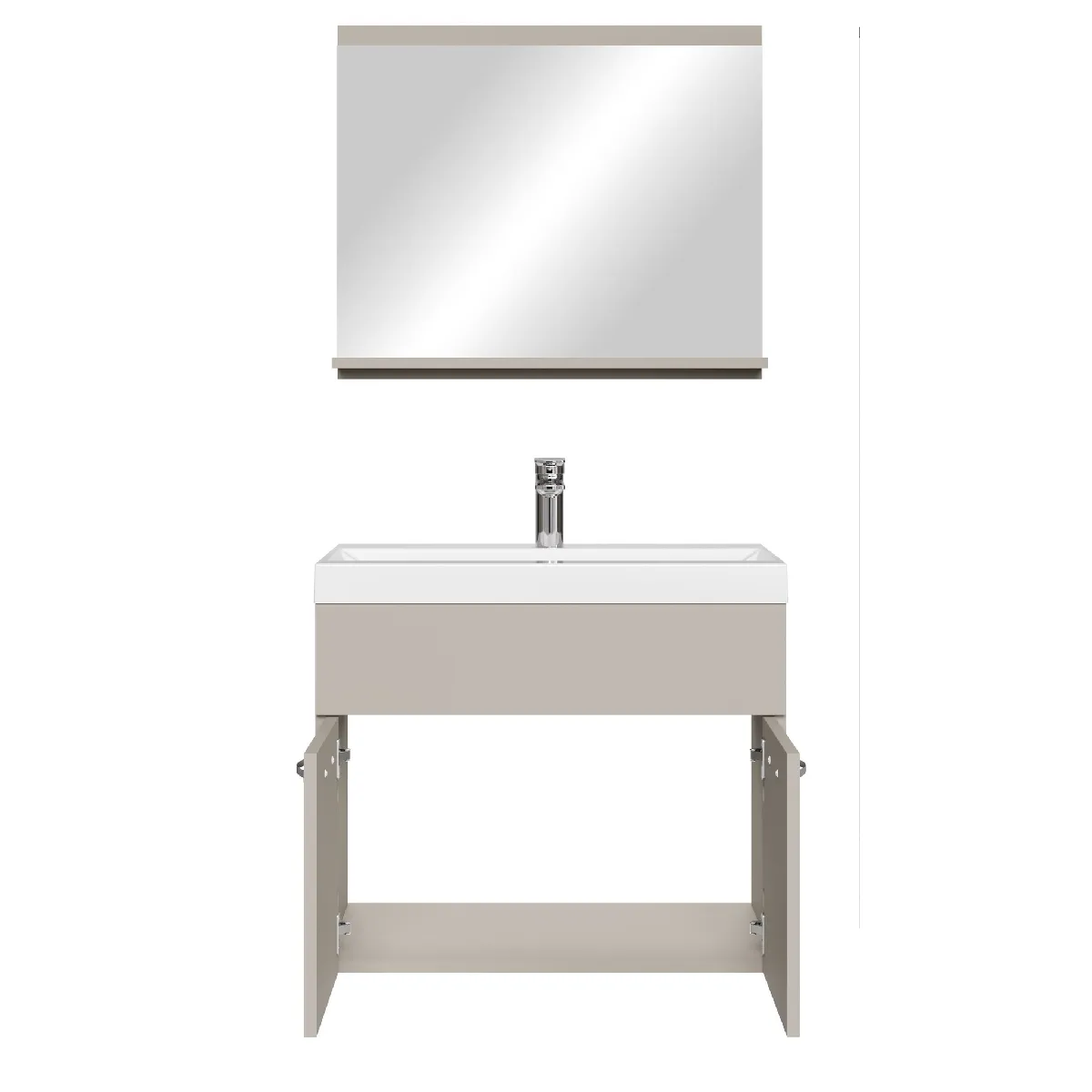 Ensemble de meubles de salle de bain Montréal comprenant un lavabo et un miroir. Cet ensemble offre à toute salle de bain, grande ou petite, un espace de rangement supplémentaire et un style moderne et luxueux. Sa finition élégante facilite le nettoyage. De couleur beige, l'ensemble est facile à assembler. Le meuble est en aggloméré et le lavabo en marbre artificiel.