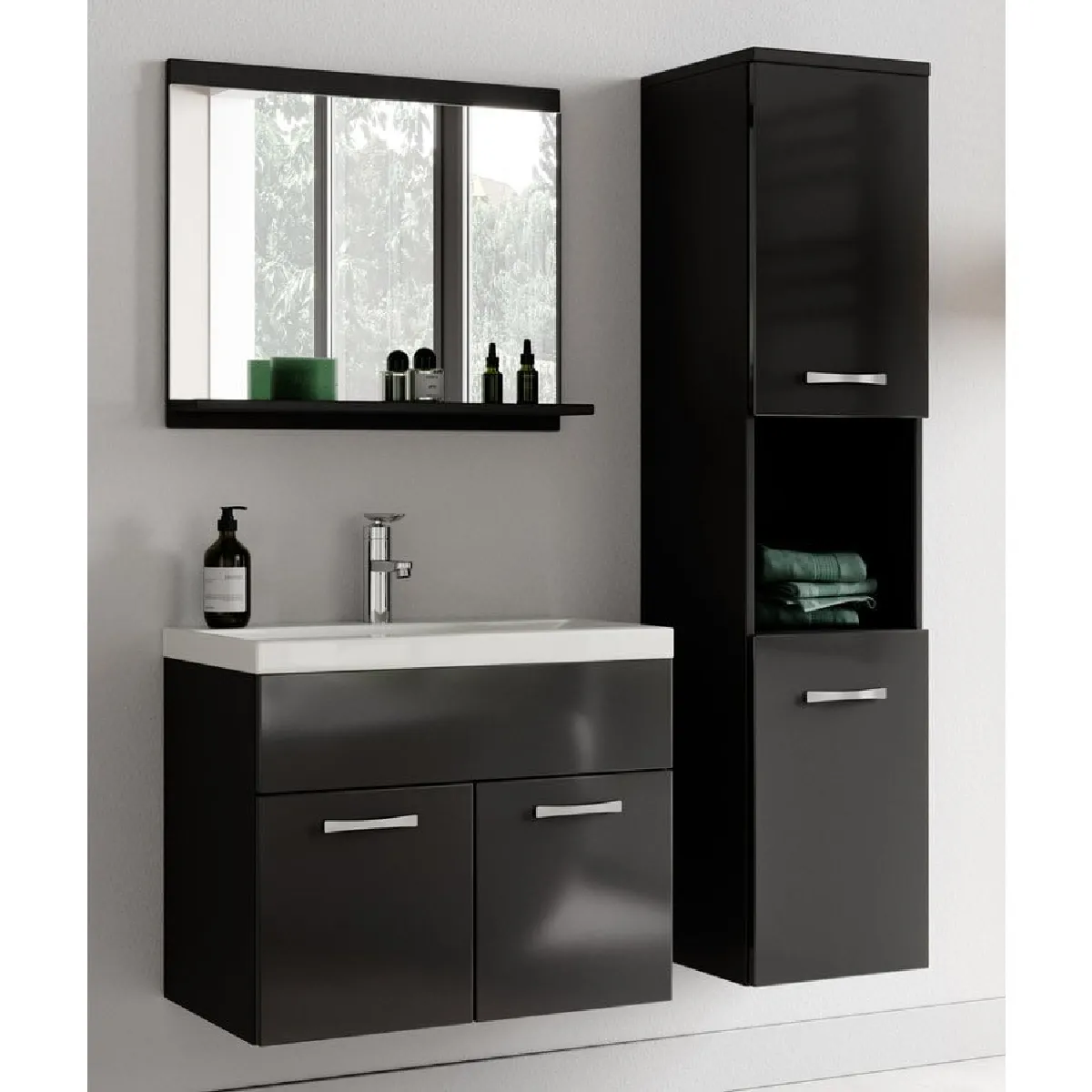 BADPLAATS Meuble de salle de bain Montreal 01 60 cm – Noir Brillant – Meuble avec Lavabo et Armoire