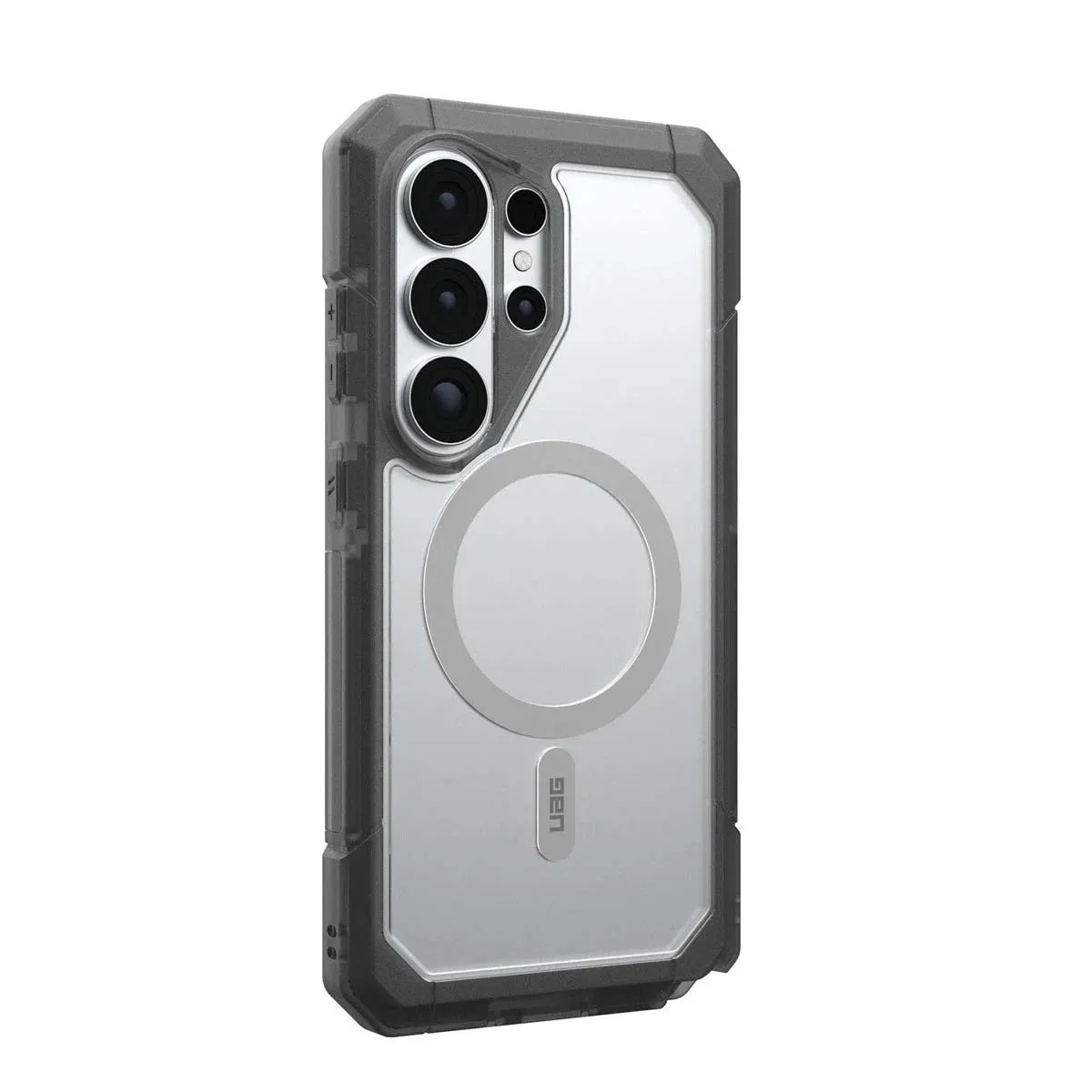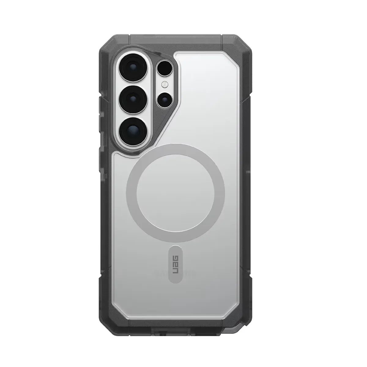 Cette coque noir argent pour Galaxy S26 Ultra associe une construction co-moulée avec dos rigide et noyau souple absorbant les impacts. Le cadre renforcé et les coins biseautés répartissent les chocs. La conception en deux parties améliore la rigidité globale. Le module magnétique intégré permet l'utilisation avec accessoires compatibles. La structure permet une protection contre les chutes jusqu'à 9,1 mètres.