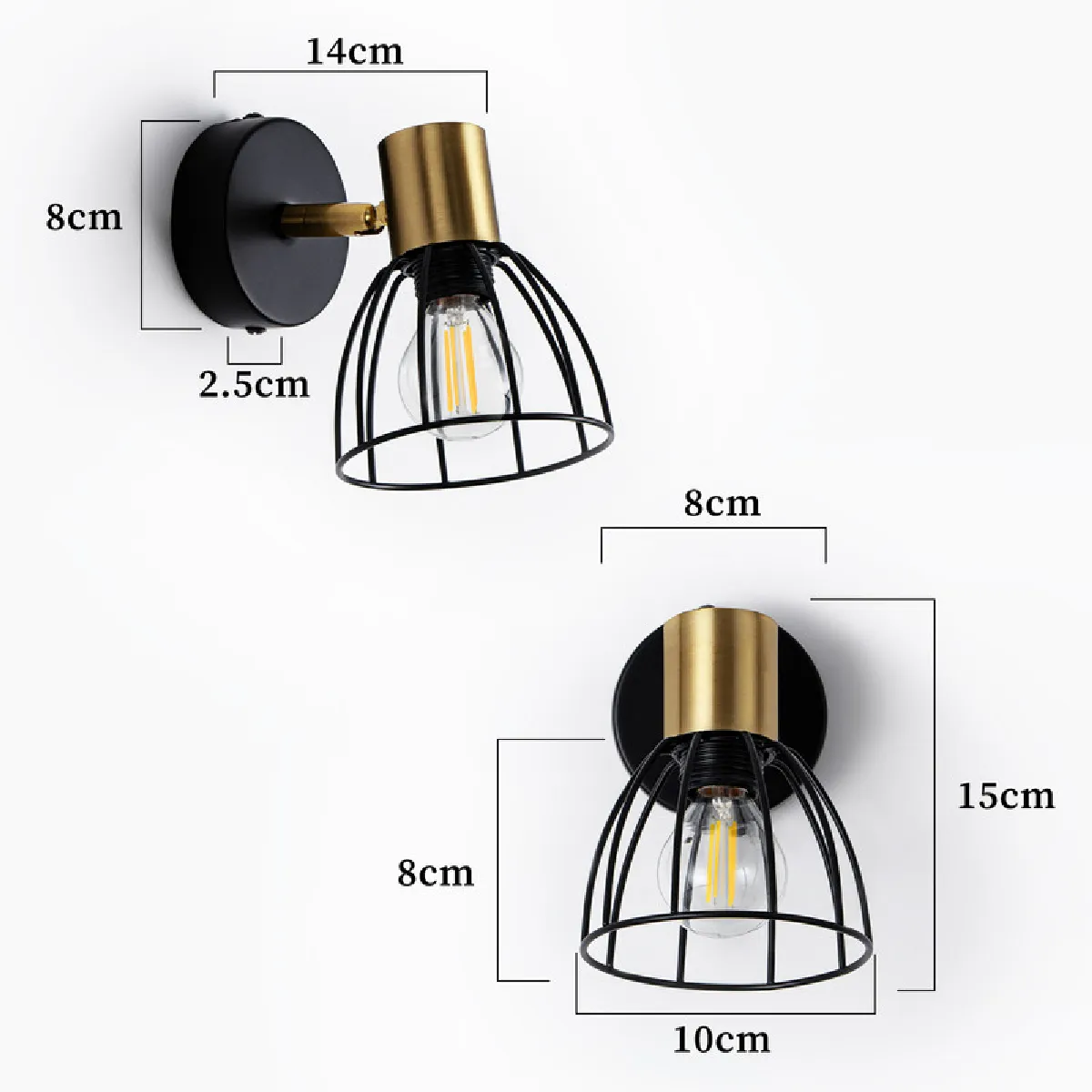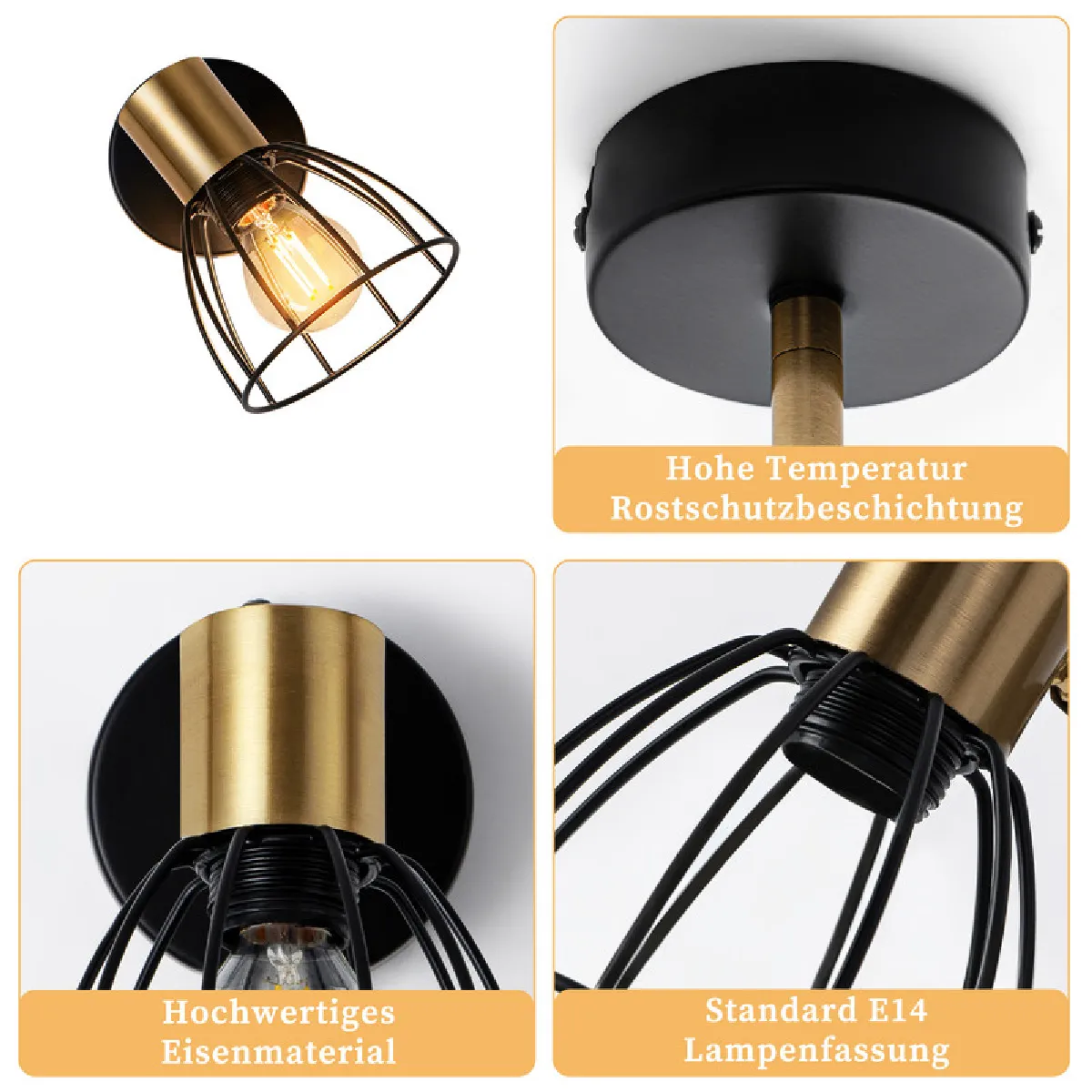 Matériaux : Le spot est fabriqué en fer forgé de haute qualité, tandis que le bras de lampe et les pièces de fixation sont en métal. Cette construction garantit robustesse, résistance à l'usure, protection contre la rouille et la corrosion, alliant qualité tactile et durabilité. L'abat-jour original en forme de cage protège non seulement l'ampoule, mais constitue également un élément décoratif artistique dans la pièce.