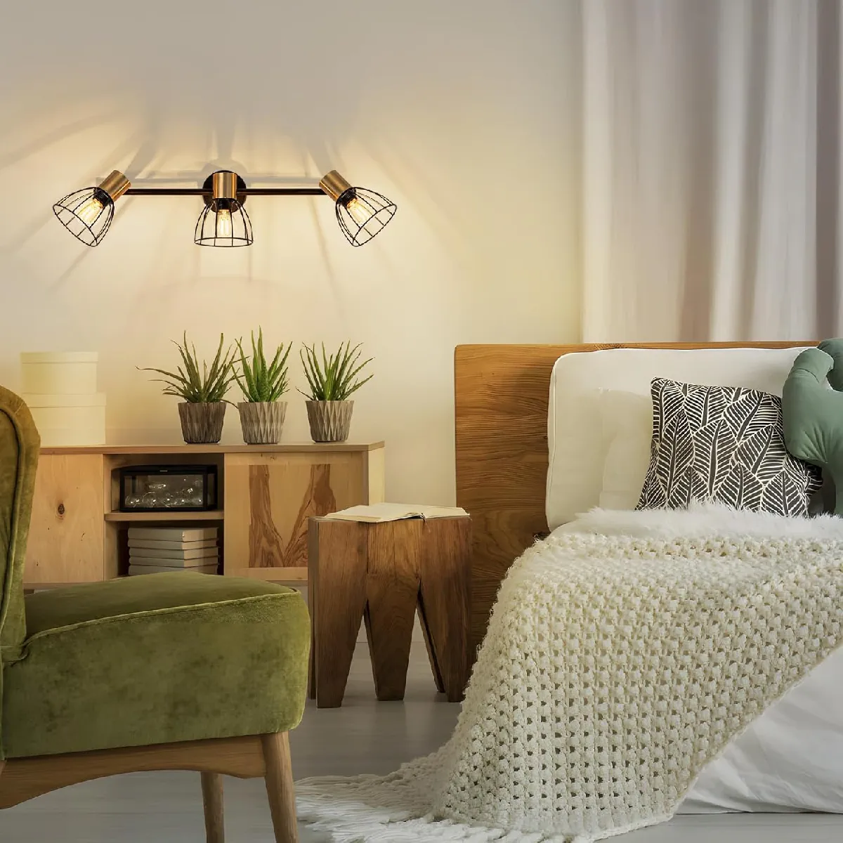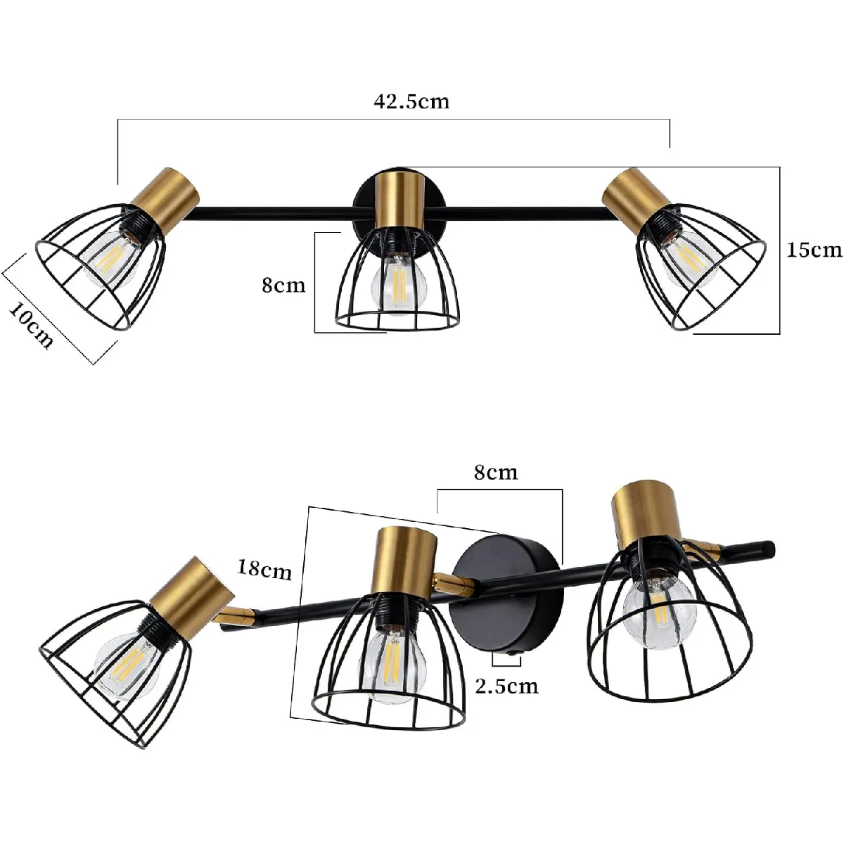 Design rétro : Cette applique murale adopte une structure en forme de cage en fer forgé de style industriel. Le cadre noir en métal est associé à des bras de lampe couleur laiton, créant un contraste visuel entre vintage et luxe discret. Ses lignes épurées dégagent un fort caractère industriel. Installée dans une entrée ou un couloir, elle devient un véritable point focal de la pièce.