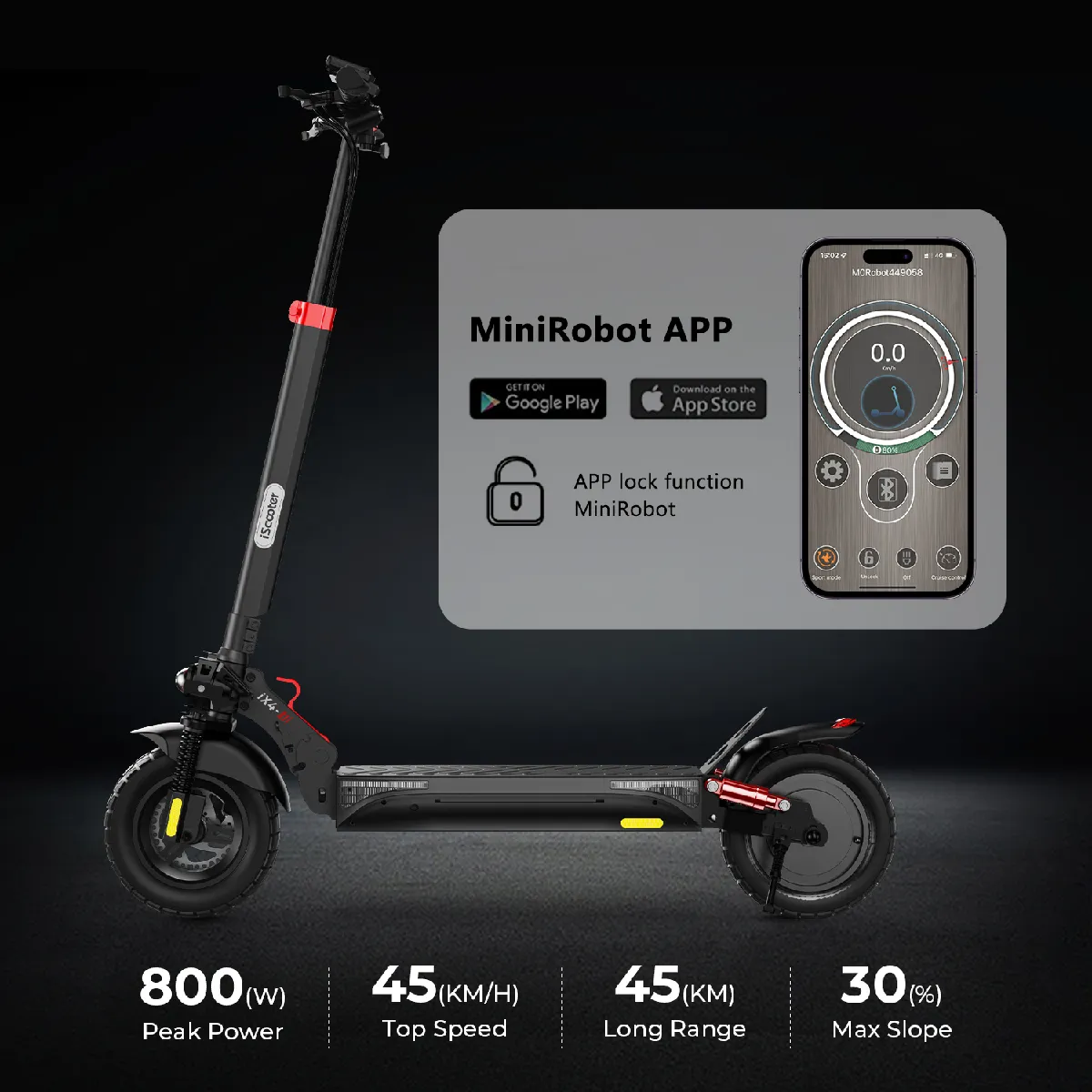 Trottinette Électrique Pliable iScooter iX4 800W 45km/h 48V15Ah 40-45km APP 10" |