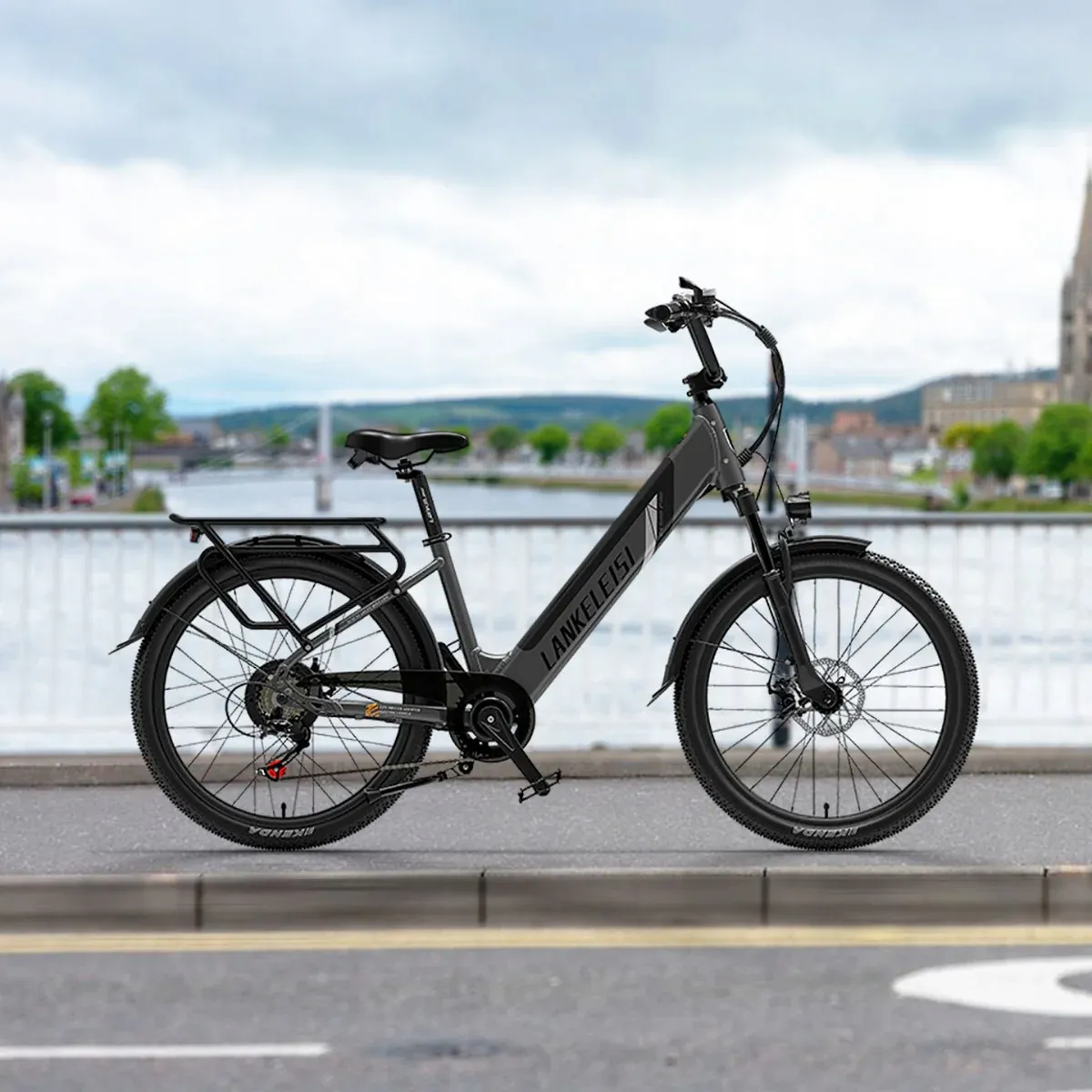 Commentaire vendeur : Vélo électrique LANKELEISI ES500PRO équipé d’une batterie 48V 14,5Ah offrant une autonomie jusqu’à 130 km, d’un moteur brushless 500W (pic 750W) et d’une transmission Shimano 7 vitesses. Il dispose de freins à disque doubles, d’un éclairage LED, d’un cadre en aluminium 6061, de pneus 24×2,4 pouces et d’un écran LCD multifonction. Étanche IP54, il est parfait pour les trajets urbains quotidien, allie confort, puissance et sécurité.